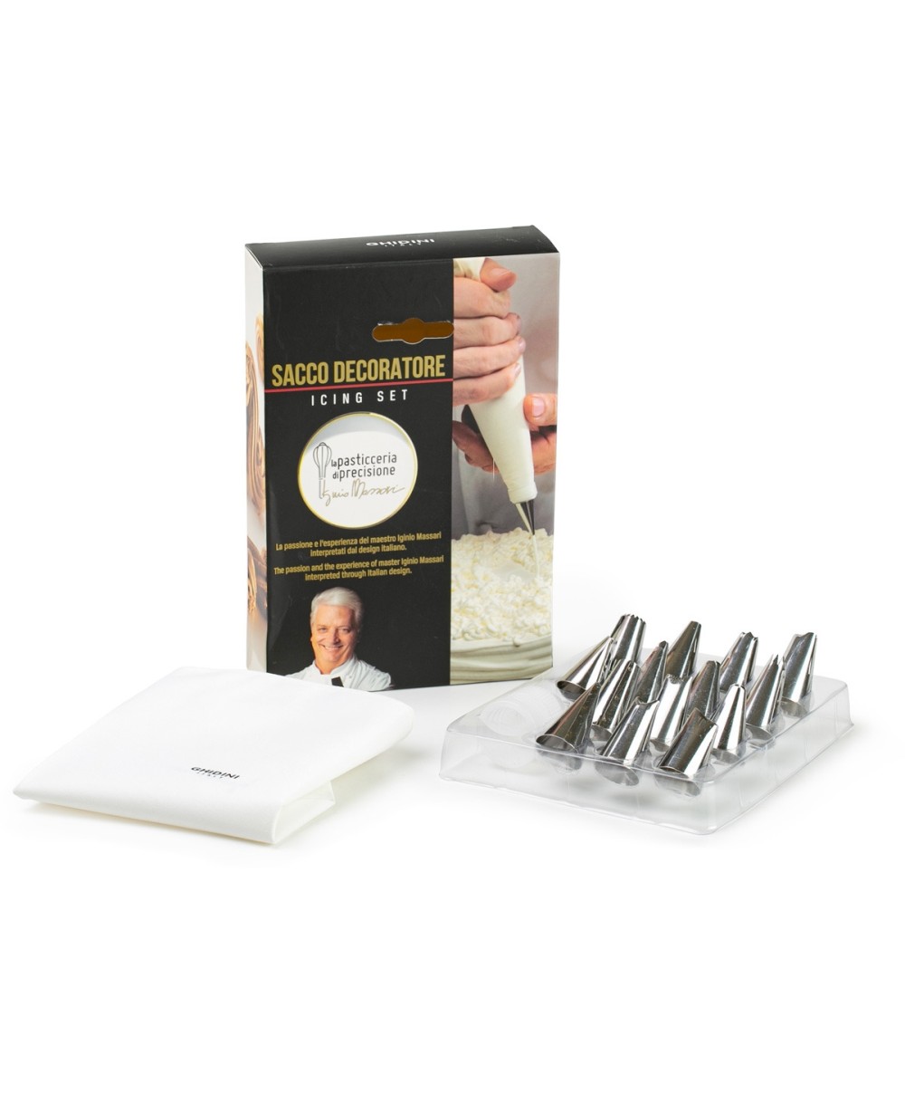 3527 è il set formato da sacco decoratore e 14 bocchette realizzato da Ghidini a firma Iginio Massari.