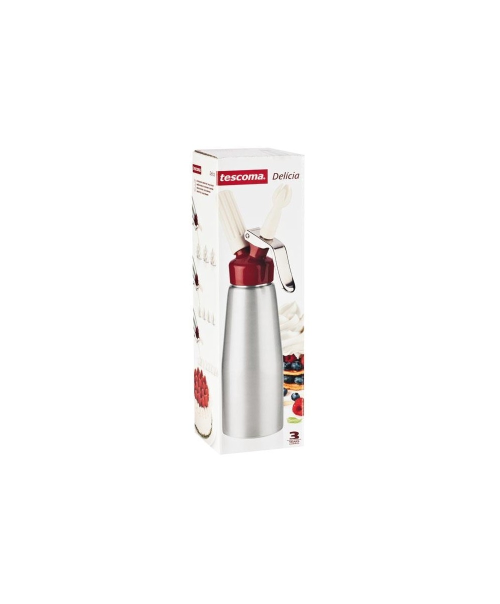 Con il sifone 630544 di Tescoma potrai ottenere una deliziosa panna montata o mousse dolci o salate. Capacità 0,5 litri. Dimensione: ø 8 cm - h 31 cm