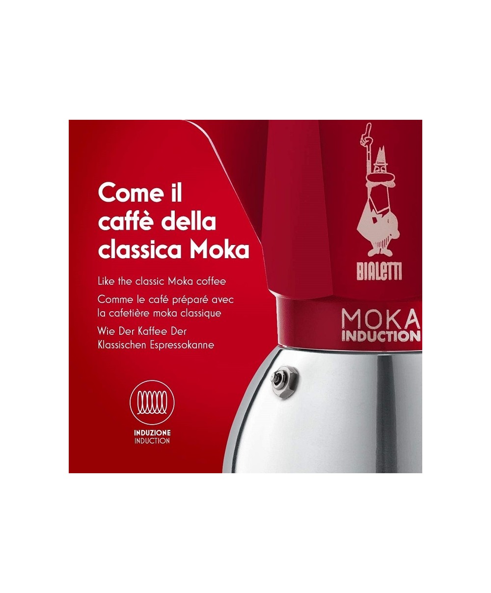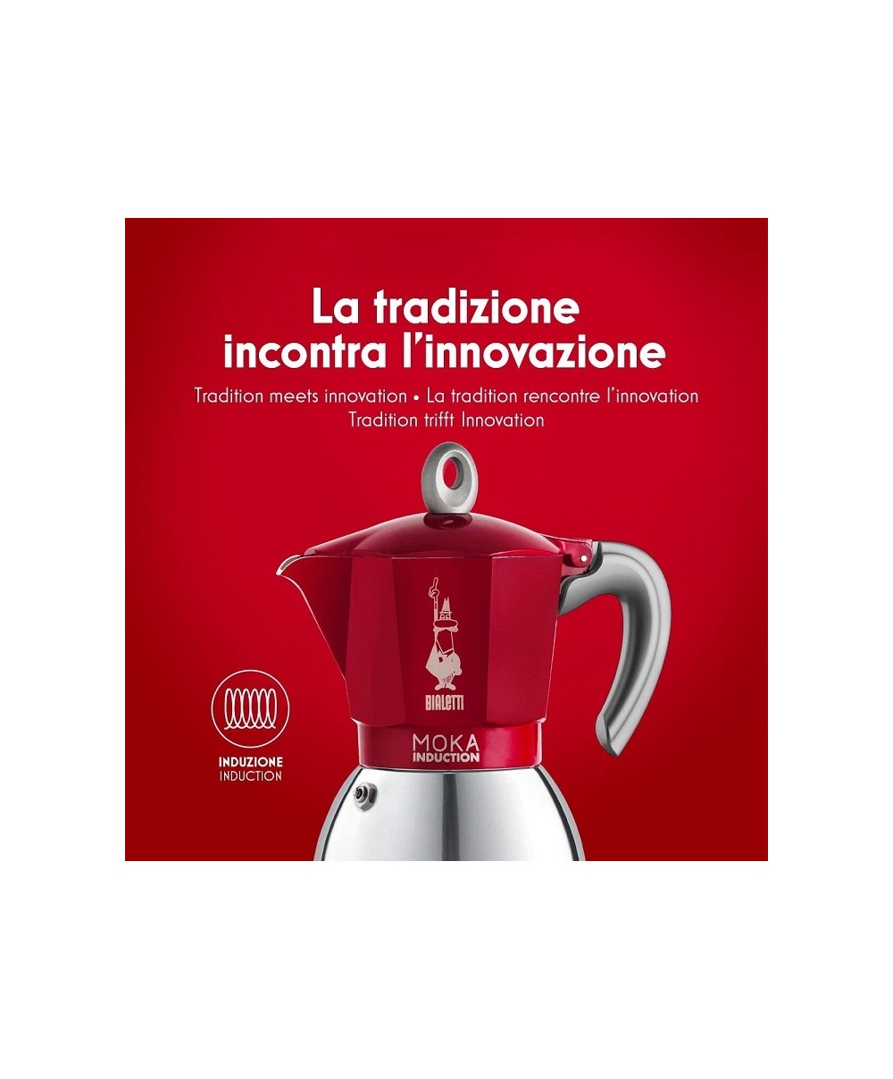 New Moka Induction è la Moka di Bialetti ideale per preparare il caffè con la caffettiera anche su piani cottura a induzione. Colore: Rosso - 2 tazze