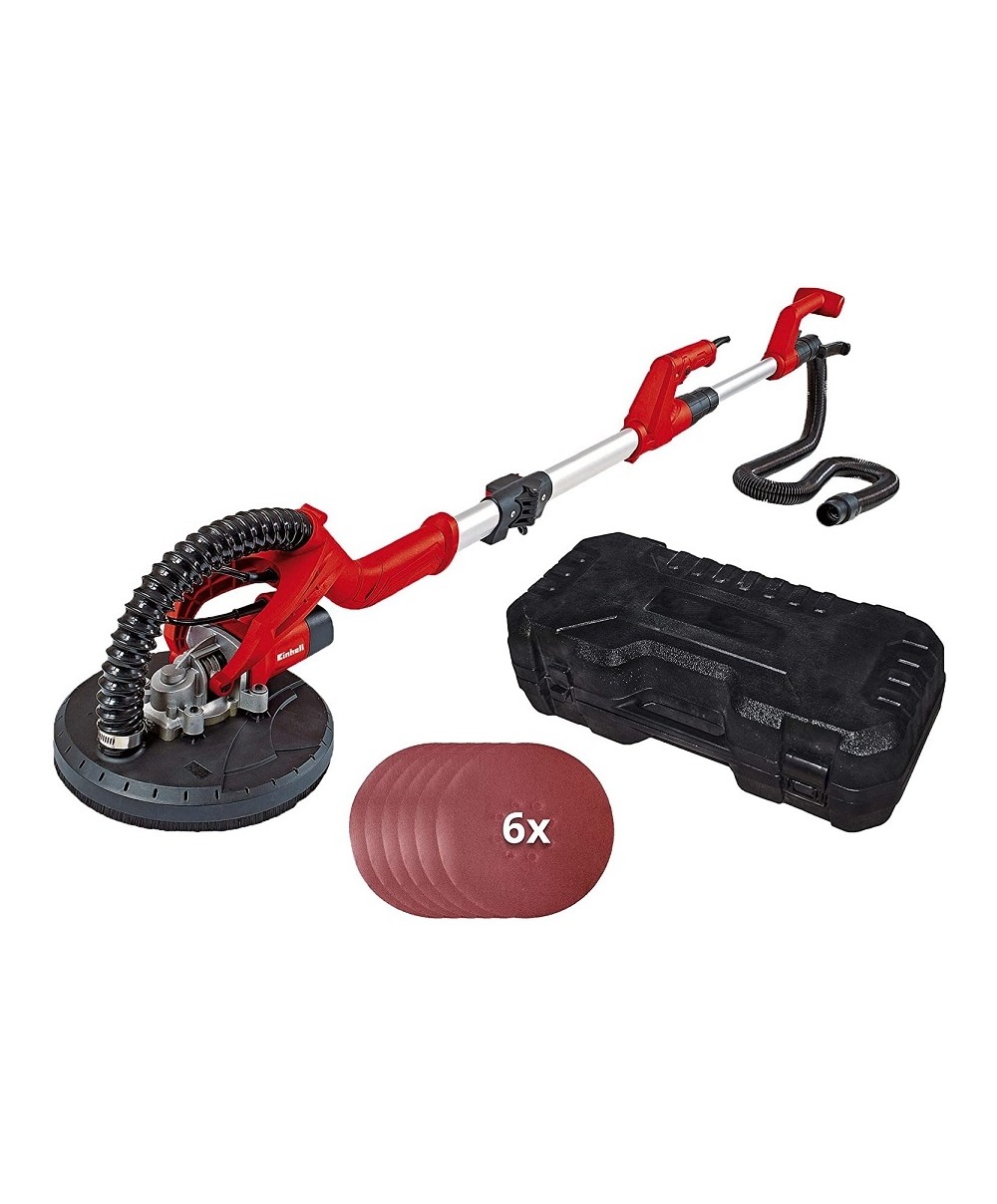 "La levigatrice per pareti Einhell TC-DW 225 per uso universale è un valido aiuto per la realizzazione e ristrutturazione di interni anche per gli hobbisti più esigenti. Fornita di un potente motore da 600 Watt, sarà indispensabile per esempio per la levigatura di pareti e soffitti, nonché la rimozione di residui di carta da parati, di pitture, ecc. w. Per migliori risultati ed una pratica lavorazione anche su ampie superfici, la levigatrice è fornita di manico telescopico (allungabile fino a 165 cm), impugnatura a T ergonomica, posizionamento della testa su cuscinetti. La dotazione comprende 6 dischi abrasivi P60/P80/P120.