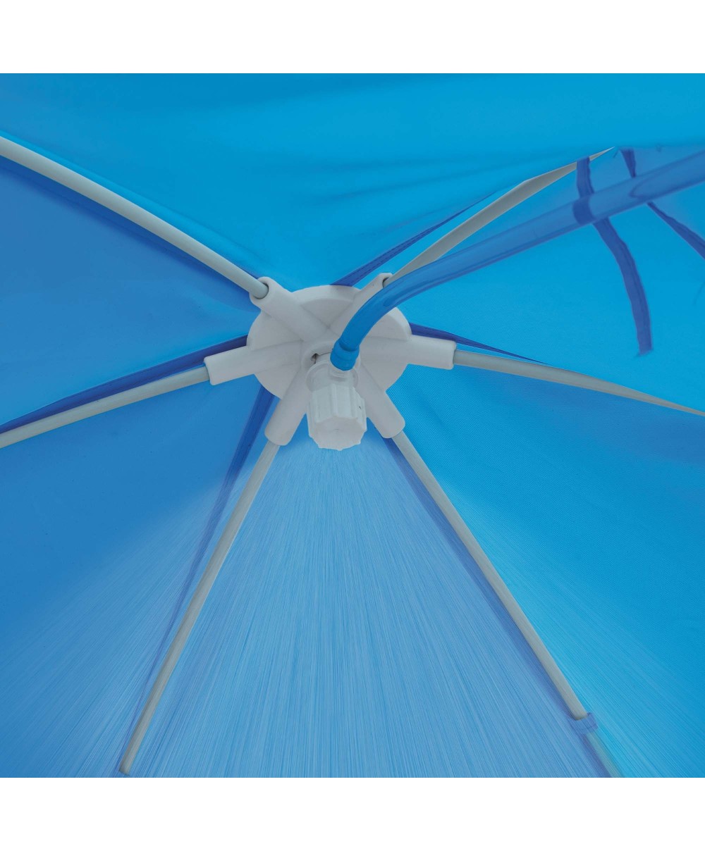 La tettoia parasole impermeabile UPF 50+ offre protezione dai raggi UV ed è alta ben 165 cm da montata. È, inoltre, munita di uno spruzzino regolabile, collegabile al tubo da giardino, per rinfrescare i bimbi durante il gioco.