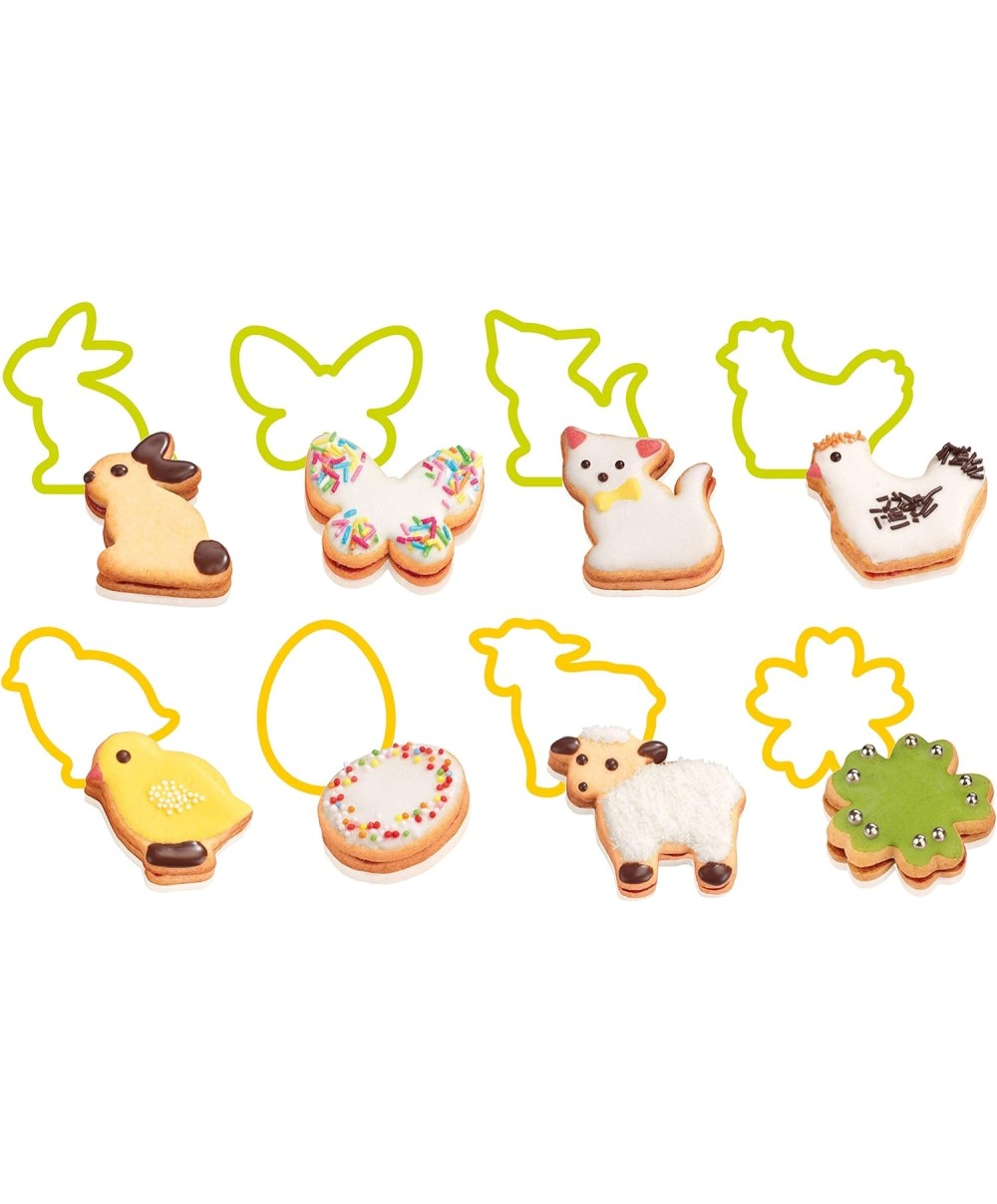 Un set composto da 8 diverse sagome per creare biscotti dalle forme pasquali. Il set è dotato di un anello per tenere le formine in ordine. Prodotto in plastica resistente di alta qualità.