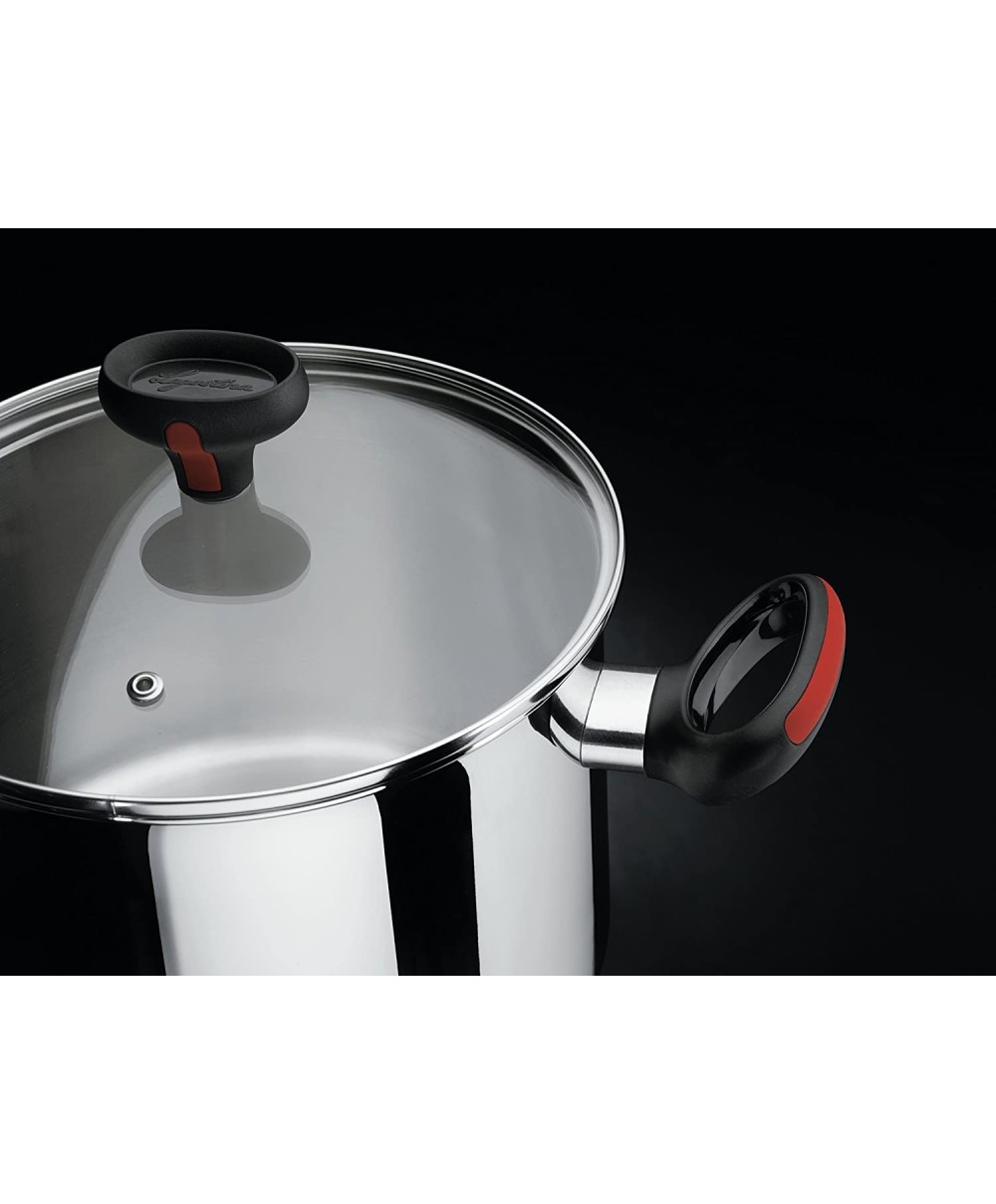 La Linea Rossa è la gamma di prodotti pensata e studiata con lo chef Simone Rugiati. Pentola realizzata in acciaio inox 18/10 con eleganti inserti rosso passione. La Pentola Multicottura è estremamente versatile, grazie al doppio cestello in filo che permette di cuocere due alimenti contemporaneamente, mantendoli separati, per cominciare ad insaporire i cibi già durante la bollitura. In cucina falla semplice, prendici gusto, e mettici del tuo!