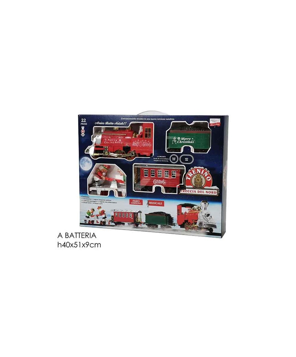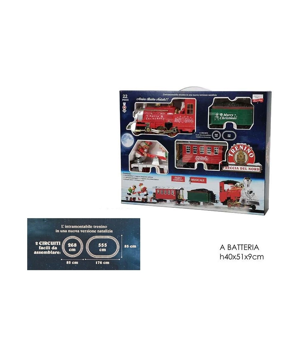 È l'intramontabile trenino "Freccia del Nord" adesso in versione natalizia. Con i binari inclusi nella confezione è possibile realizzare o un circuito da 85 cm di diametro o un circuito ovale con dimensione 176 x 85 cm.