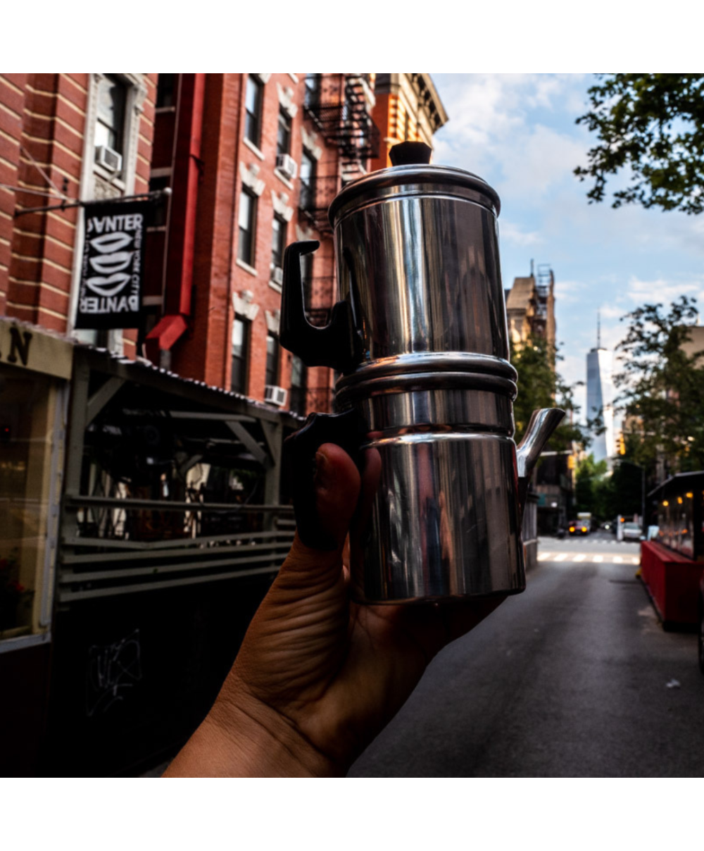 Il contenitore del caffè, con forma di cilindro cavo aperto da un lato, e con l'altro lato forato per permettere il passaggio dell'acqua in ebollizione, dove si mette la polvere di caffè torrefatto; l'ultima parte esterna è filettata, al fine di avvitarvi il filtro. Il serbatoio del caffè si alloggia a incastro dentro il serbatoio dell'acqua.