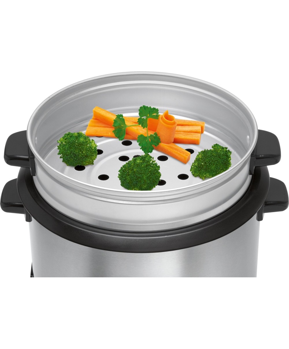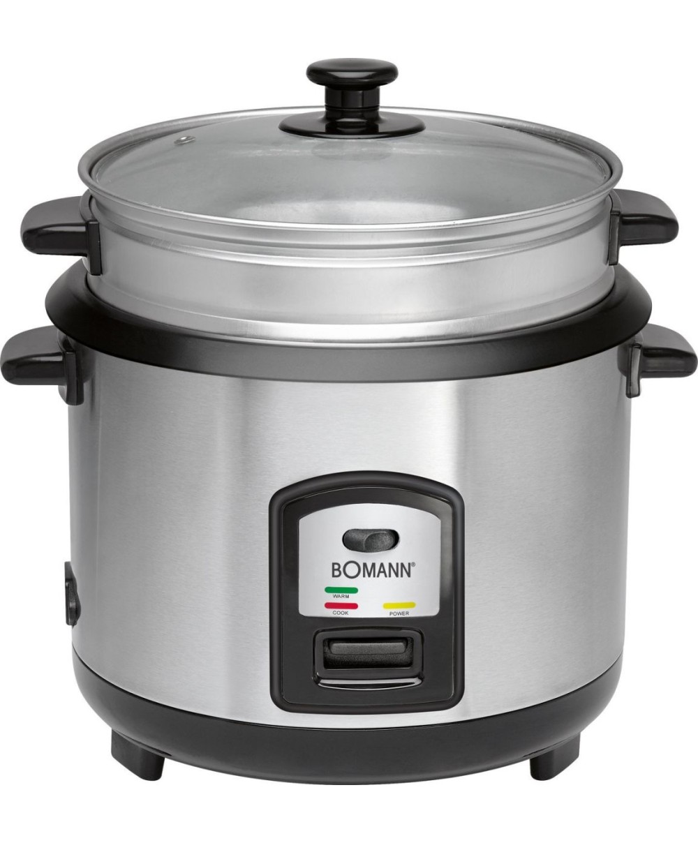 Il cuoci riso RK2282 di Bomann è un ottimo alleato in cucina per cuorere riso, cereali, fagioli, piselli, lenticchie mineste e per la cottura a vapore. La pentola interna amovibile ha il rivestimento antiaderente mentre l'inserto per la cottura a vapore è in alluminio.