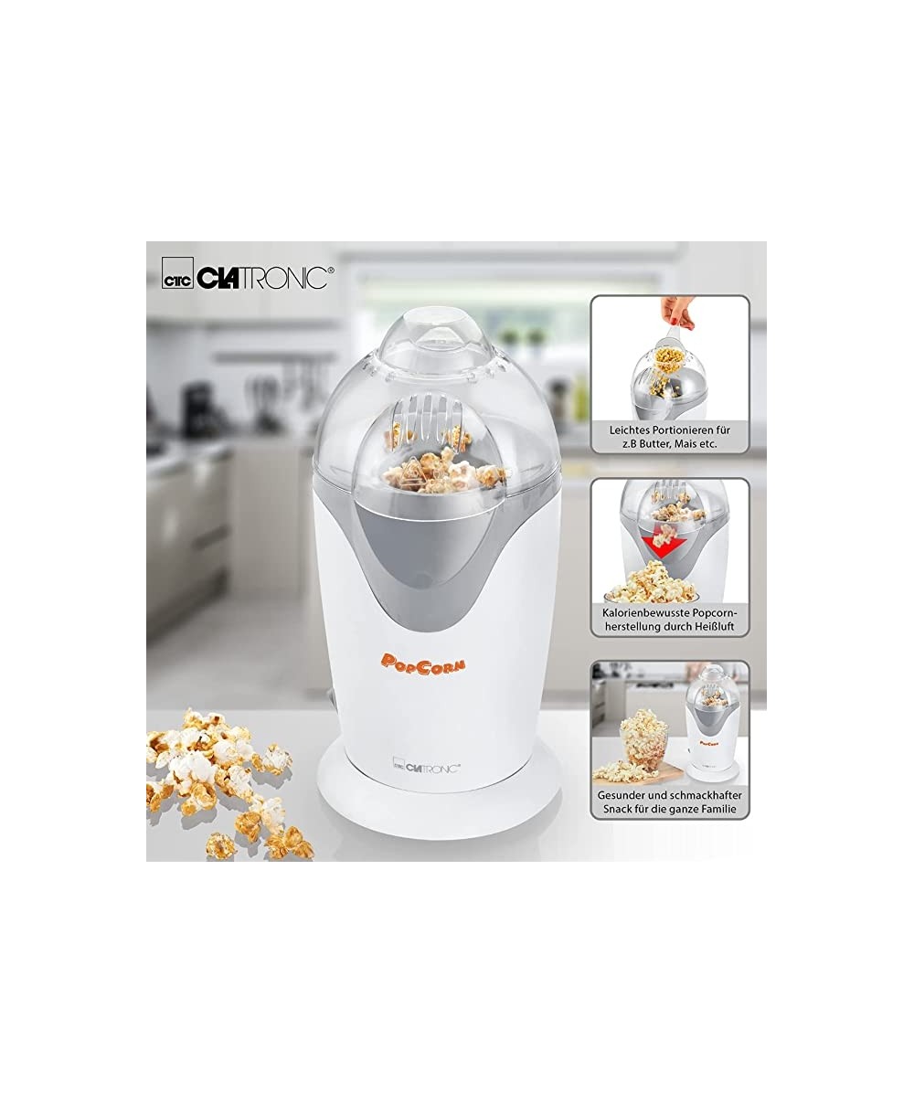 La macchina per Pop Corn PM 3635 di Clatronic accompagnerà le tue serate in famiglia o con gli amici, con tanti popcorn croccanti e stuzzicanti pronti per essere sgranocchiati uno dopo l’altro. Grazie allo speciale metodo di cottura ad aria calda trasforma, in 3 minuti il mais in leggeri popcorn.