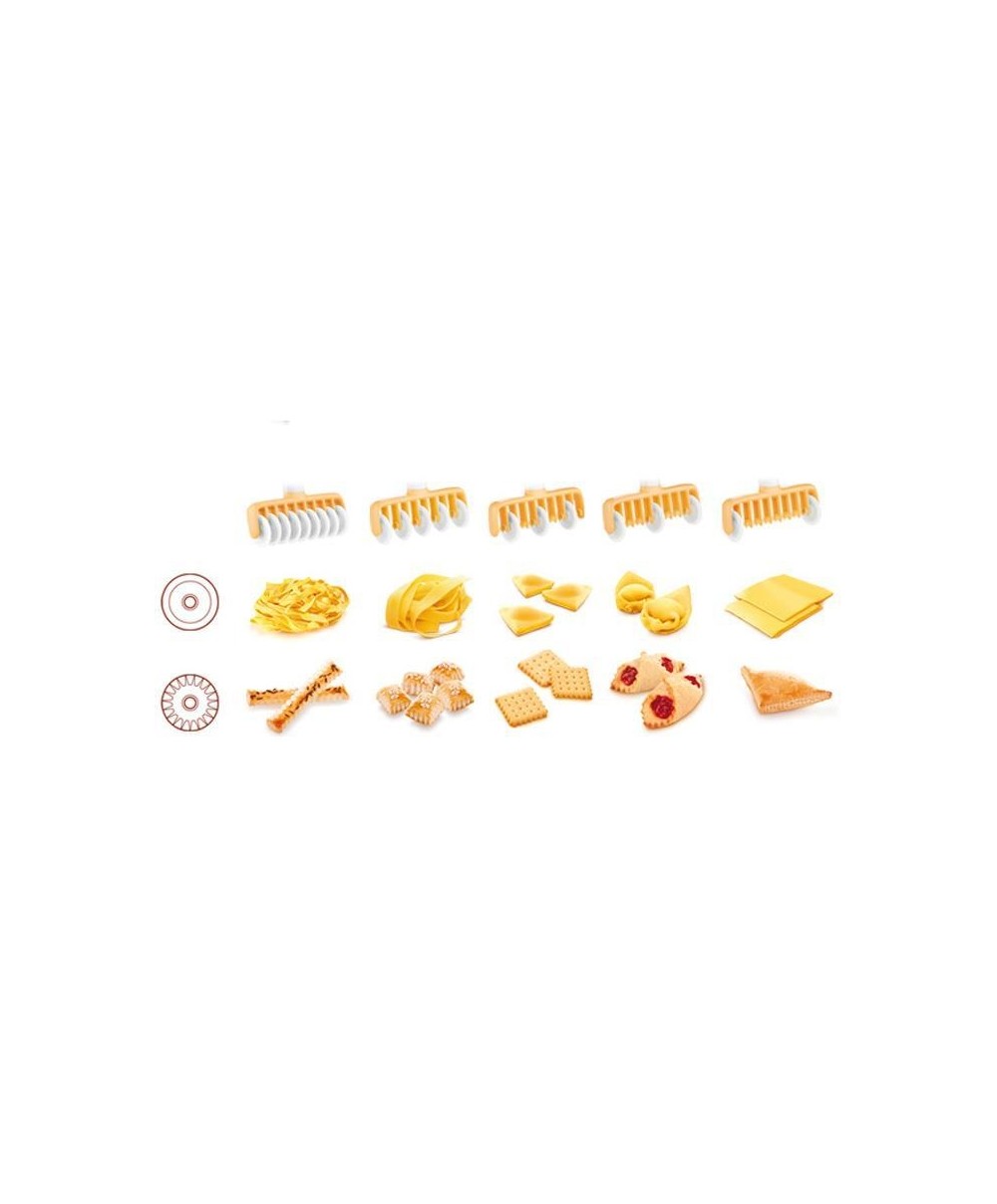 - Rotelle dentellate e lisce si sostituiscono facilmente ed è possibile anche decidere con che intervallo posizionarle così potrai ottenere sfiziosi grissini oppure strisce di pasta della larghezza che preferisci.