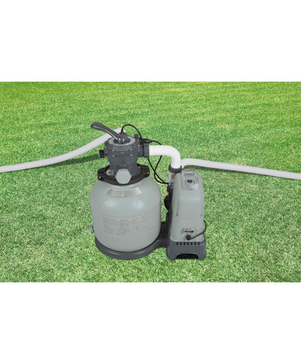 - Pompa a sabbia da 6.000 l/h combinata con generatore di cloro (utilizzo consigliato con questa piscina per 3 o 4 h al giorno)