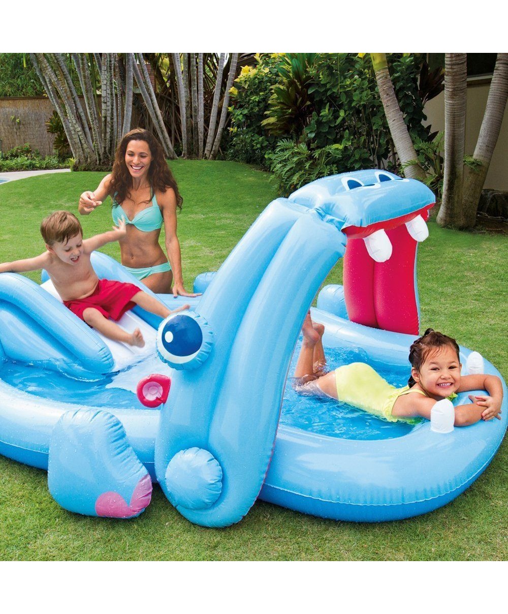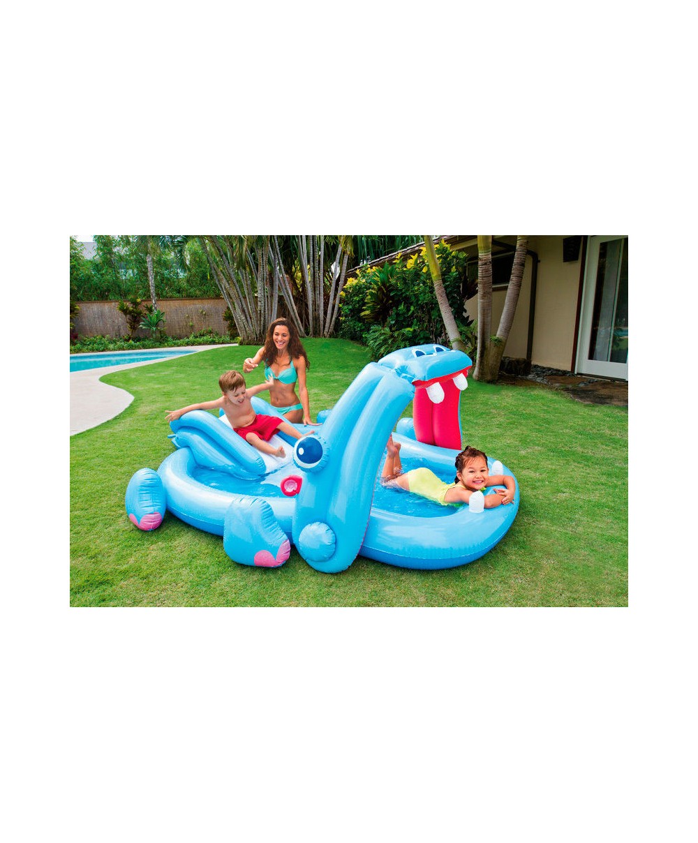 Con il Playcenter Ippopotamo i vostri bambini potranno divertirsi e trascorrere serenamente le calde giornate estive. 57150 di Intex è composto da una mini piscina e da uno scivolo con materassino di atterraggio posto alla fine.
