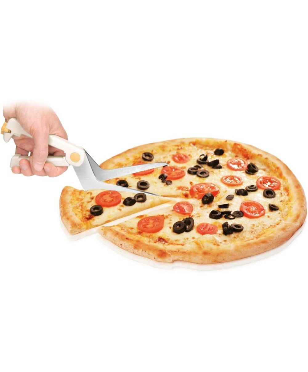 "Quando la pizza è molto soffice e la mozzarella troppo filante, si rischia nell’affettarla di strappare la pasta o di trascinare la farcitura. Con le forbici ottieni dei tagli netti, realizzando fette perfette senza rovinare l’aspetto della pizza, cosa importante se hai degli ospiti. La base in nylon è utilissima per sollevare la fetta, è resistente al calore, quindi puoi tagliare la pizza anche appena tolta dal forno e direttamente nella teglia senza rovinarla. Le solide lame sono prodotte in acciaio inossidabile; i manici in plastica resistente. Sono provviste di un sistema di chiusura di sicurezza.