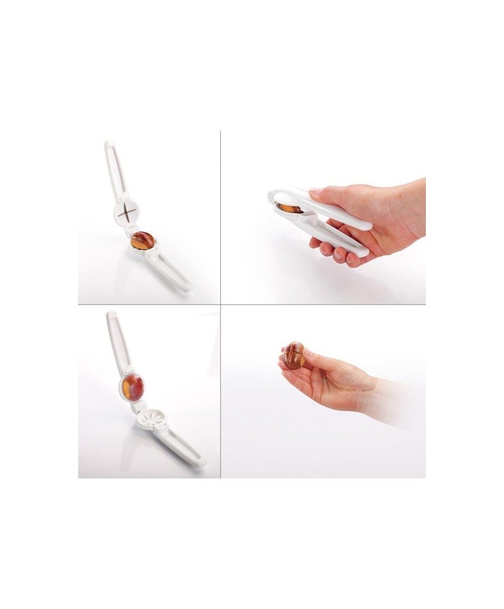 - Pinza taglia castagne in modo veloce e sicuro; la buccia incisa può essere rimossa facilmente dopo la cottura
