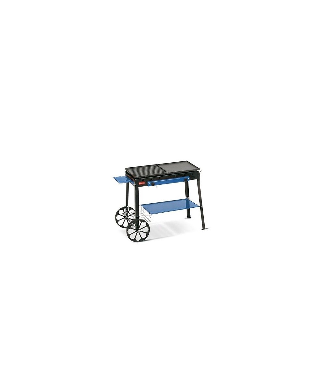 Ghisa gas Stereo è un barbecue a gas GPL montato su carrello. Le due piastre in ghisa, possono essere poste in posizione piana o inclinata per favorire l’eliminazione dei succhi di cottura. È prodotto in acciaio verniciato e montato su ruote La struttura del barbecue possiede due pratici piani di appoggio per una maggiore comodità durante la preparazione delle pietanze. È possibile asportare le piastre per utilizzare il barbecue come un normale gas da esterno. Omologato CE Certigaz