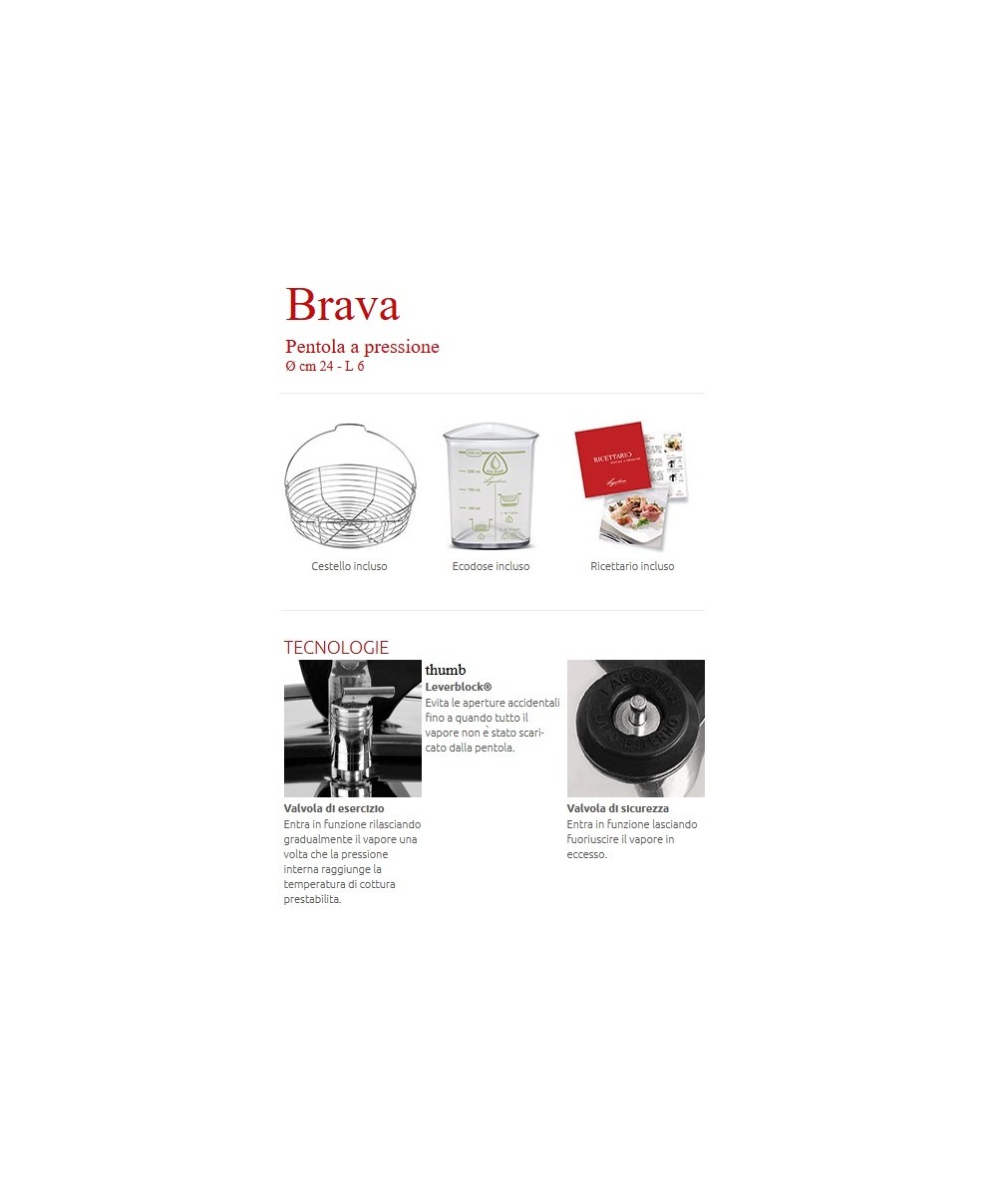 LAGOSTINA PENTOLA A PRESSIONE 6 LITRI BRAVA IN ACCIAIO INOX INDUZIONE