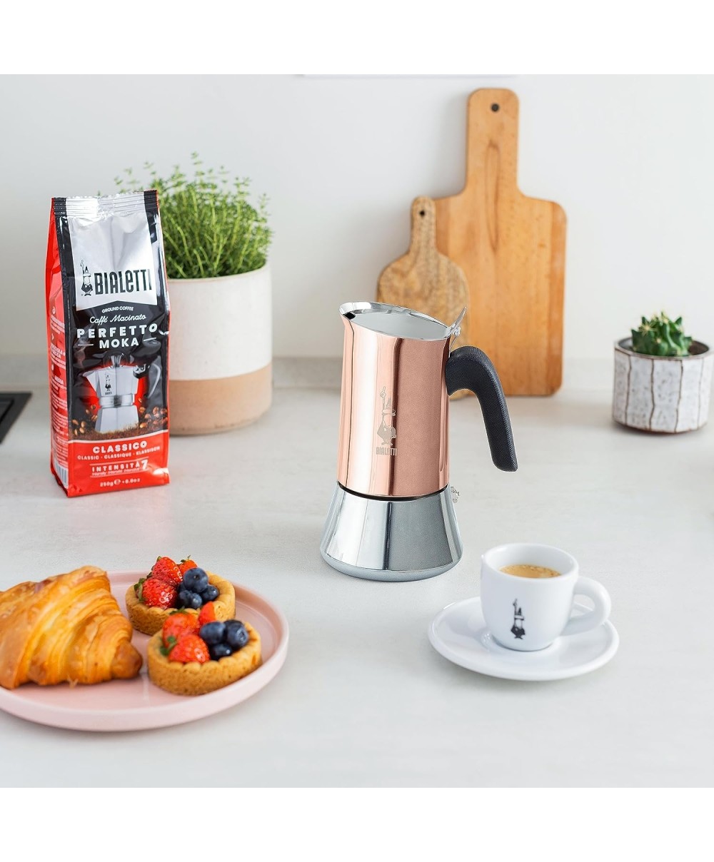 "Dedicata agli amanti del caffè e del design, New Venus Rame di Bialetti è la caffettiera in acciaio inox di Bialetti. L'eleganza e le performance sono da oggi presentate in una forma rinnovata.