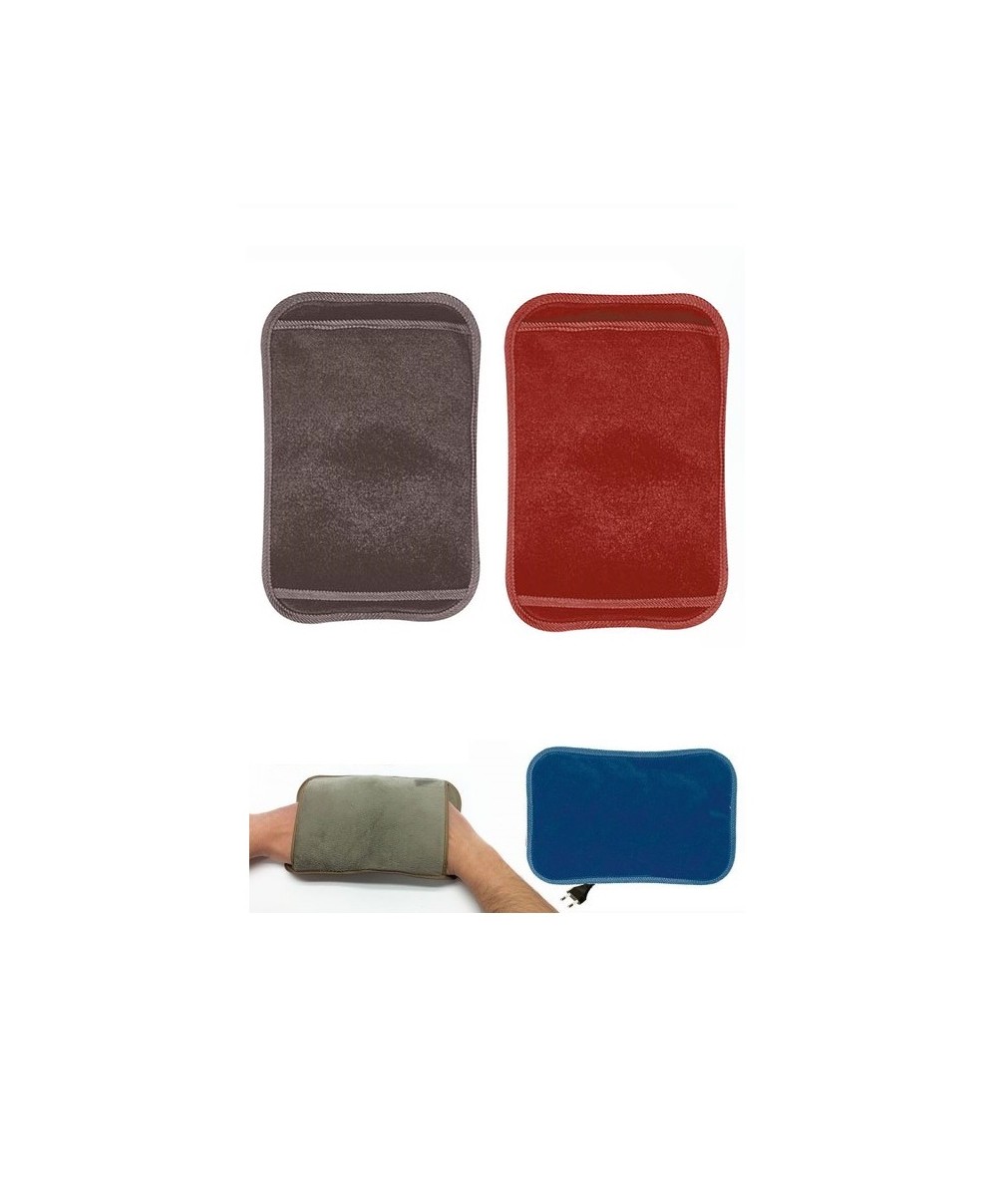 "750963 è il modello di borsa di acqua calda elettrica dotata di tasca scaldamani. È rivestita con un morbido tessuto confortevole al tatto.