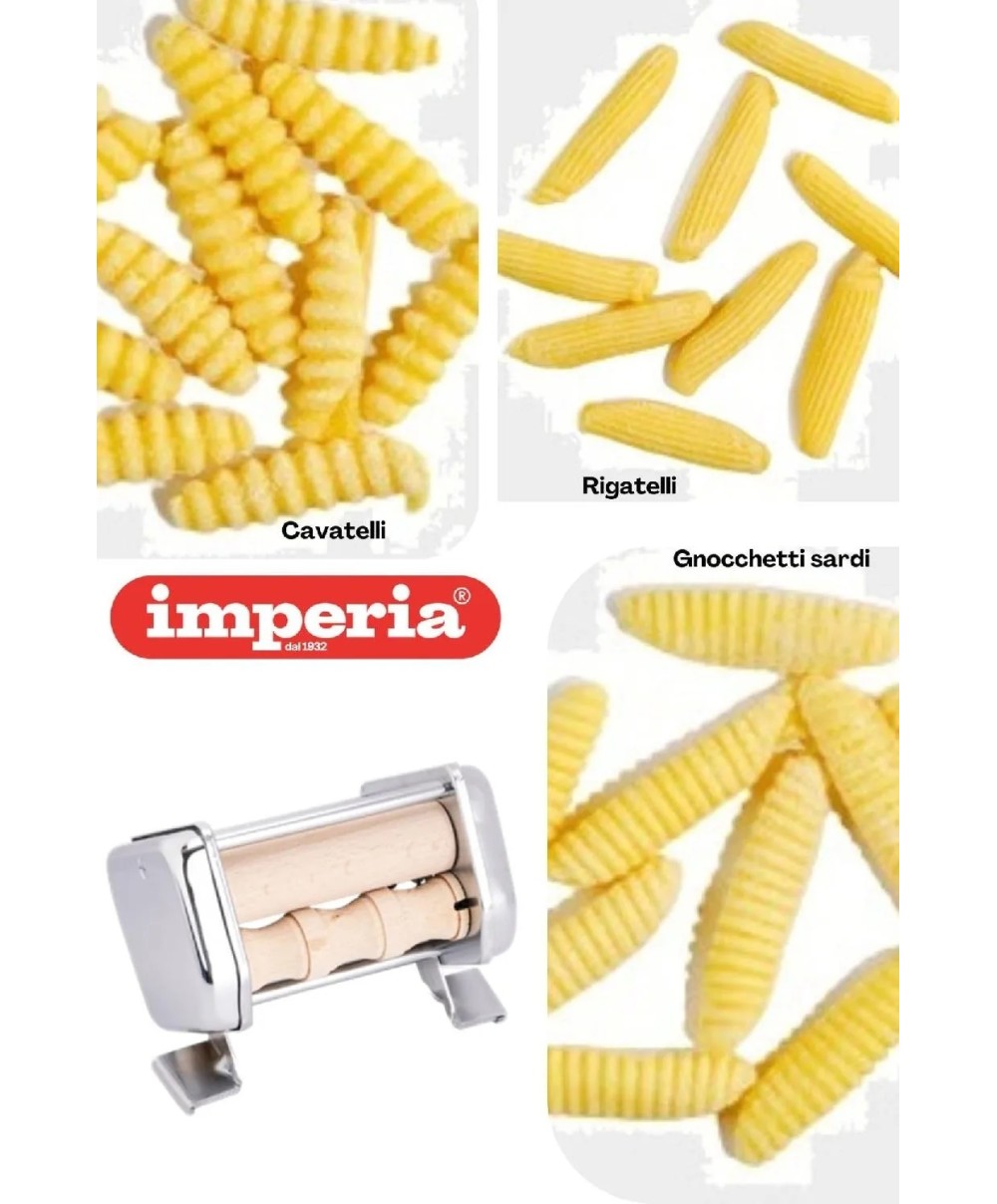 Millegnocchi è l'accessorio ideale per realizzare cavatellli gnocchetti e rigatelli con la macchina della pasta Imperia (non inclusa)