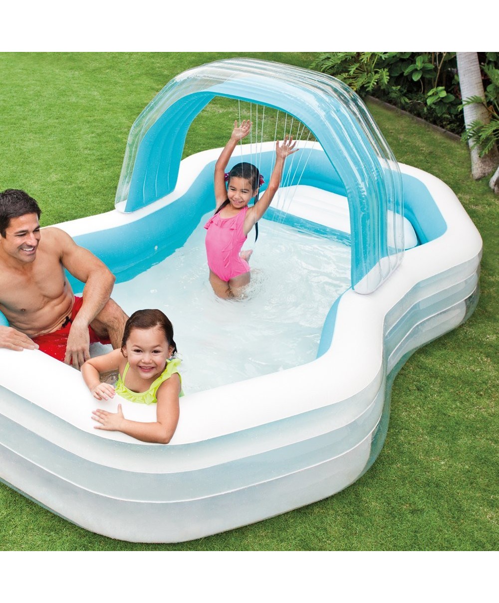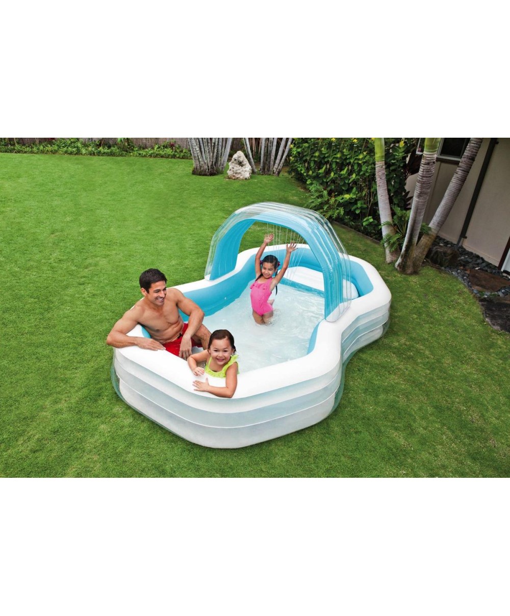 La piscina gonfiabile di Intex, 57198, è adatta a tutta la famiglia. Per rinfrescarsi durante le giornate estive con gli spruzzi d'acqua è possibile montare l'arco e collegarlo alla canna da giardino.