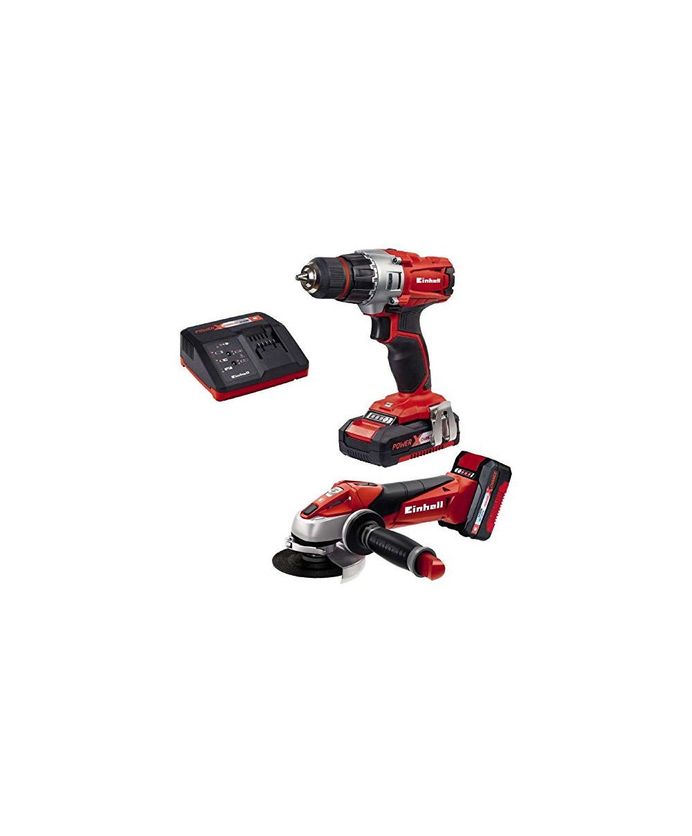 Il set utensili Einhell TE-TK 18 Li Kit (CD+AG) comprende due componenti della famiglia Power X-Change di Einhell: il trapano avvitatore TE-CD 18/2 Li, la smerigliatrice angolare TE-AG 18 Li, una batteria da 1,5 Ah, una batteria da 3,0 Ah e un caricabatterie rapido da 30 minuti.