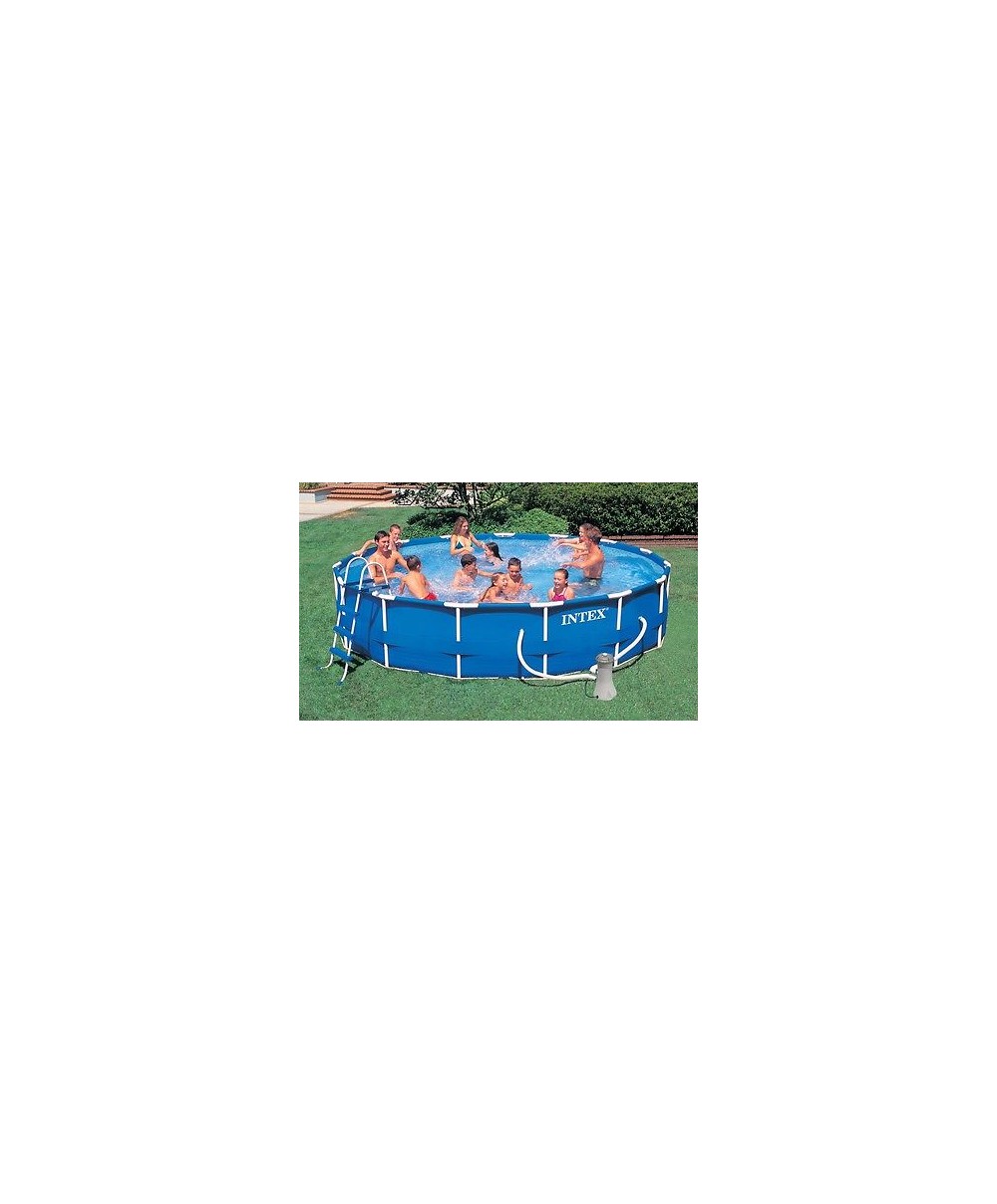 Piscina Intex rotonda con diametro di 457 cm ed altezza bordo 91 cm.