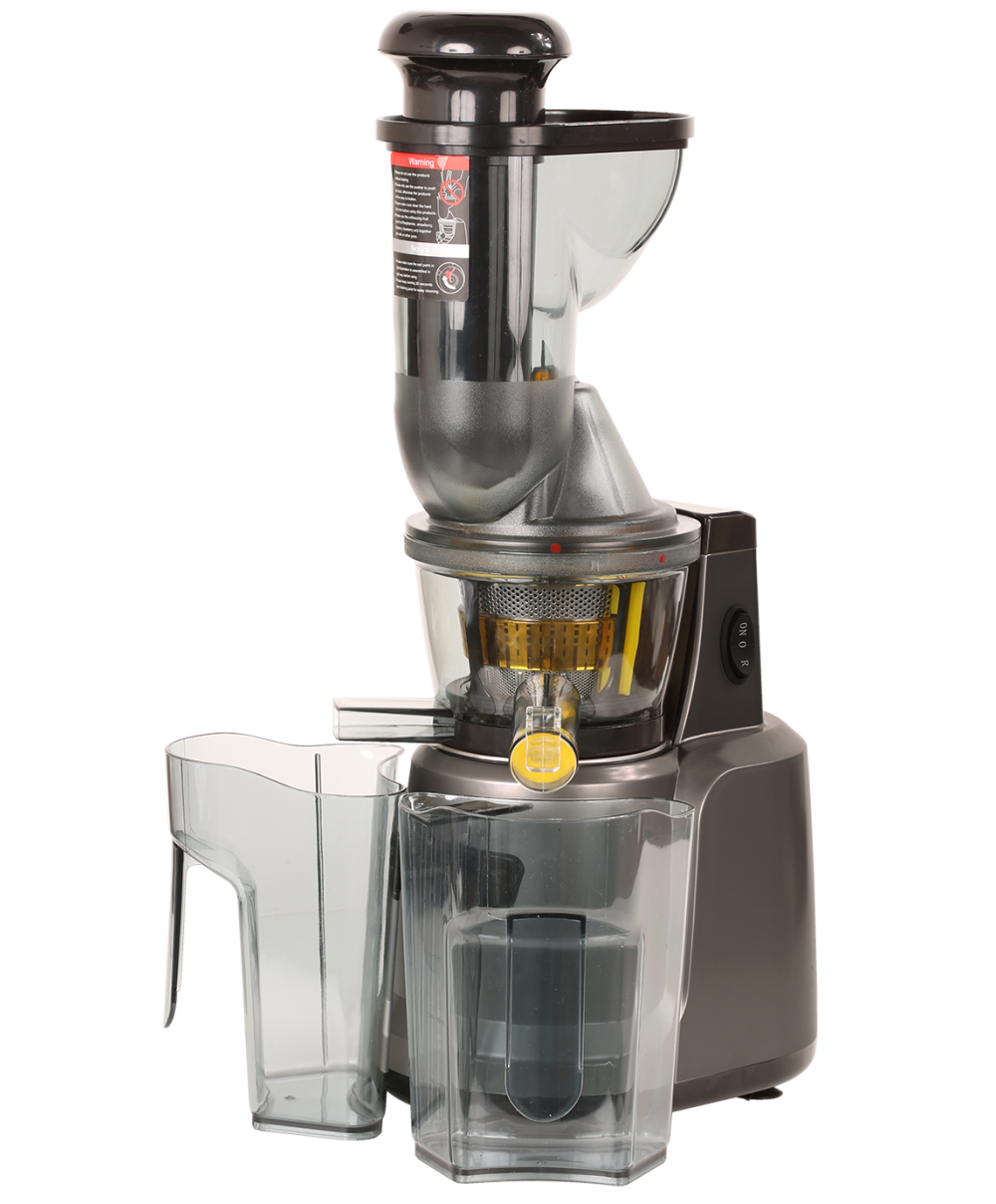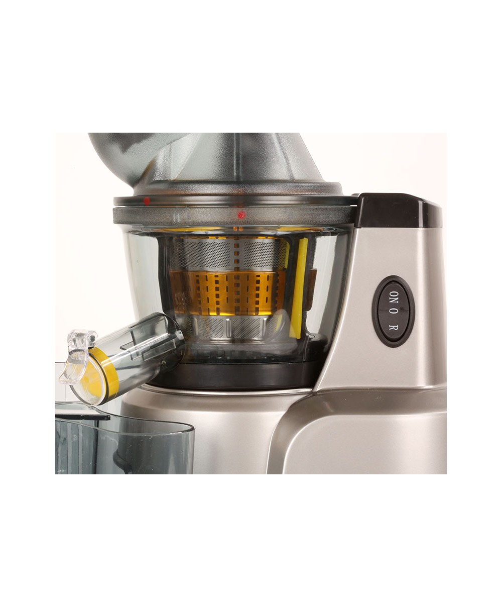 L’estrattore di succo Juice Art Muscle di Rgv ha un sistema di pressatura a vite e un potente motore ad induzione a bassa velocità che opera a 50 giri al minuto e preserva le sostanze nutritive. Grazie al tubo di alimentazione da 75 mm, non è necessario tagliare frutta e verdura in anticipo.