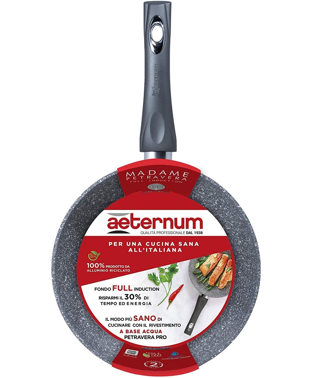 Padella antiaderente Aeternum della linea Madame Petravera Full induction. Realizzata in alluminio 100% riciclato. PFOA E NICKEL FREE