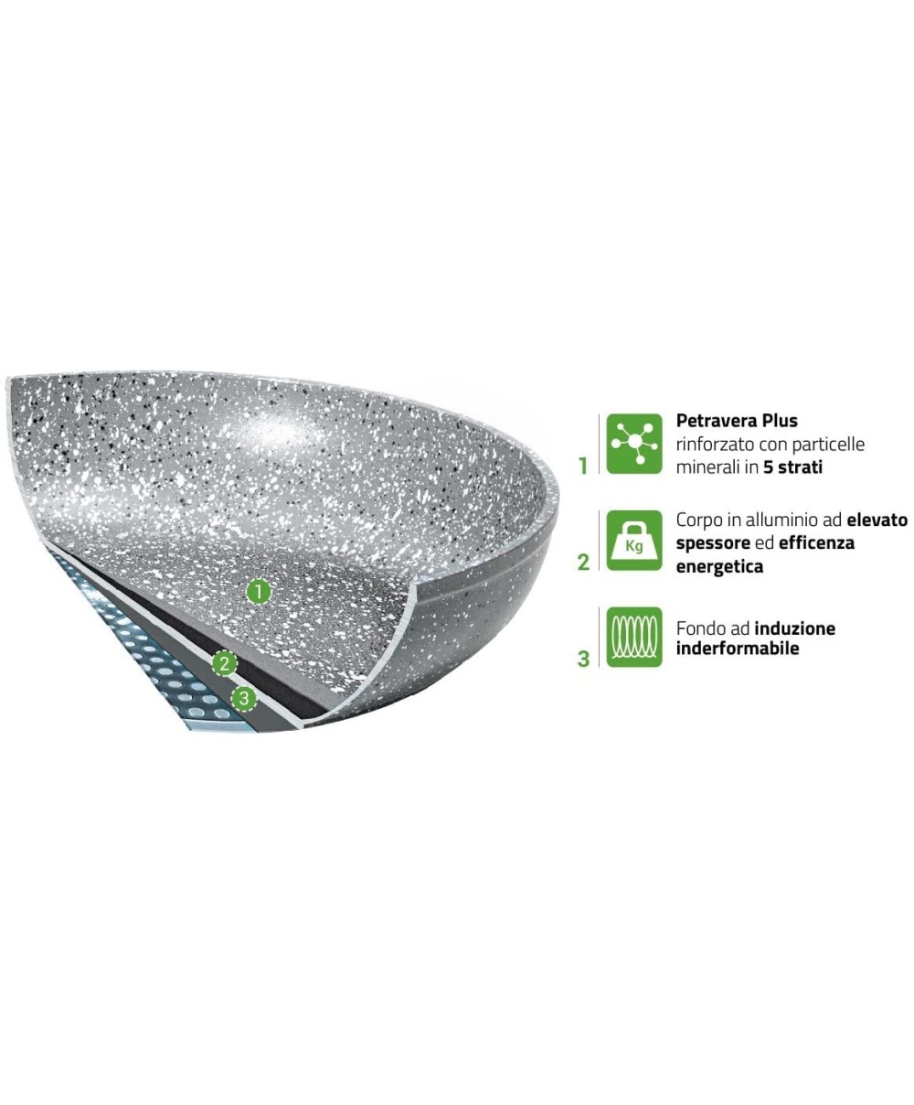 Il manico ergonomico è l'ideale per una presa salda e sicura mentre il coperchio in vetro è comodissimo per controllare a vista la cottura.