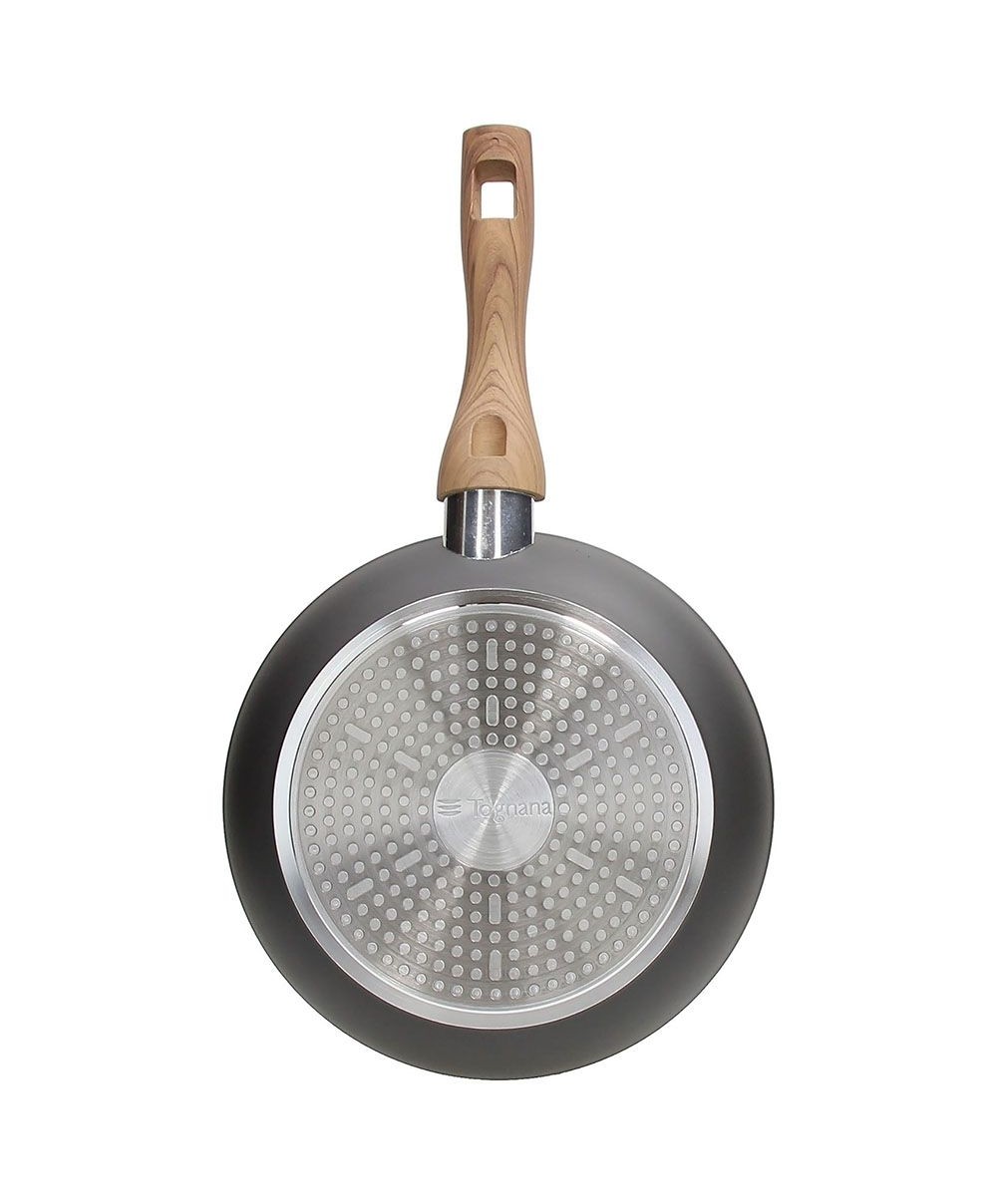 Le padelle della linea Great Stone, hanno un corpo in alluminio forgiato adatto ad una distribuzione uniforme del calore e sono dotate di fondo ad alto spessore per cotture su vari tipi di piani compresa l'induzione. Il rivestimento esterno è resistente alle alte temperature invece quello interno è antiaderente rinforzato a 4 strati e resistente ai graffi. Il manico ha una finitura soft touch effetto legno, antiscivolo e antiscottatura.