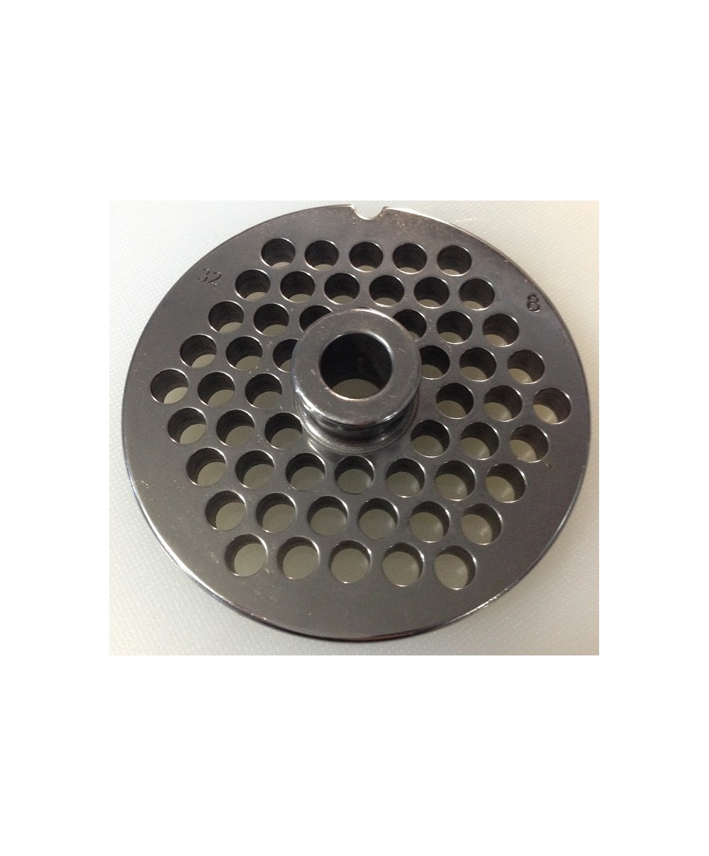 Piastra Reber realizzata in acciaio inox per tritacarne n 32 con fori della piastra pari a 8 mm