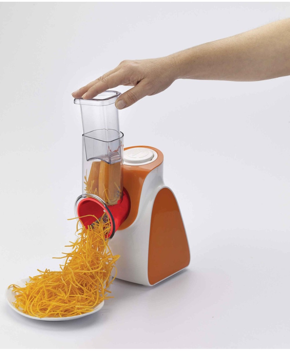 Tagliaverdure pratico e funzionale, ideale per grattugiare ed affettare verdure, formaggi stagionati, cioccolato e frutta secca. Facile da usare, prepara facilmente fresche insalate direttamente nel piatto.