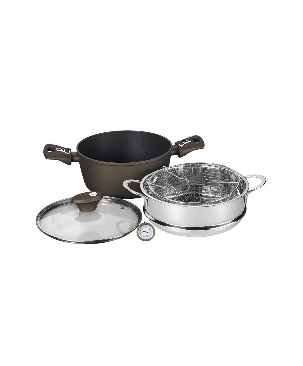 Tognana presenta Friggivapor Multifunzione della linea Diamantea. È un set composto da una casseruola più accessori che consentono di cucinare a vapore e di friggere. È incluso anche un termometro che può essere utilizzato anche in forno.