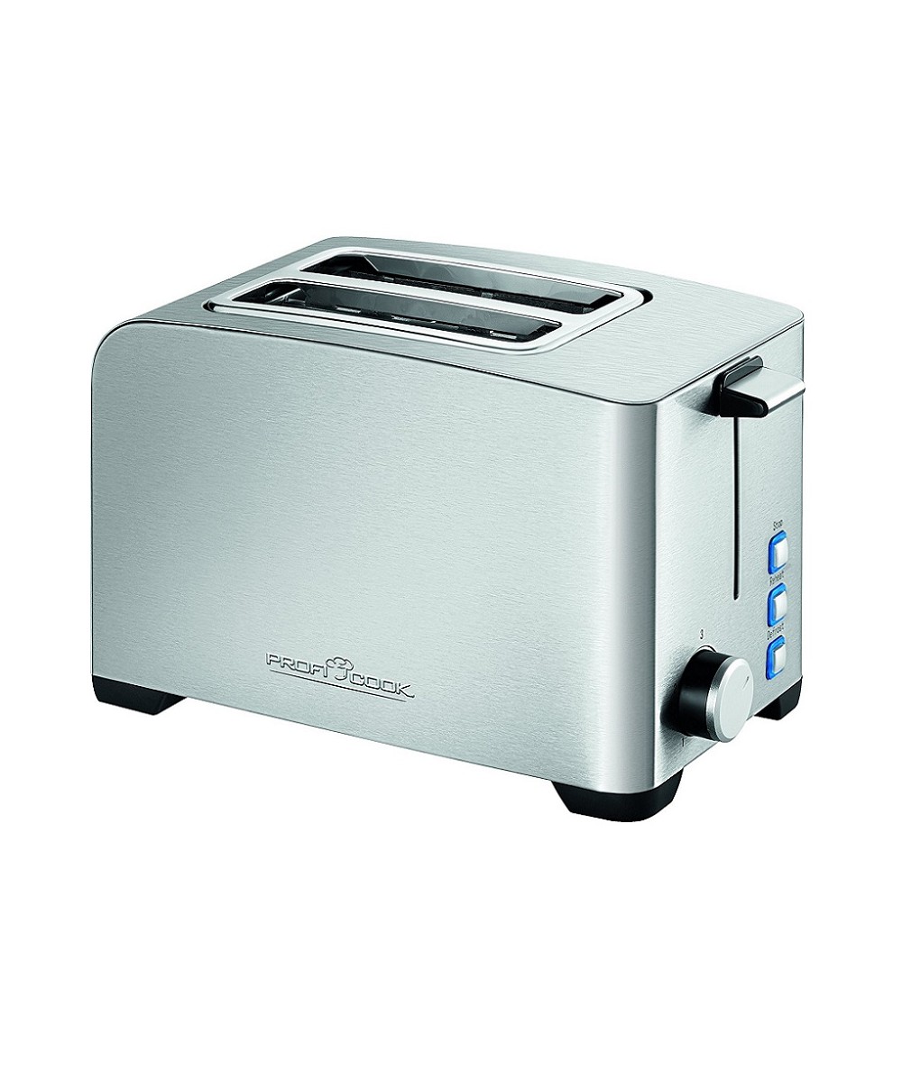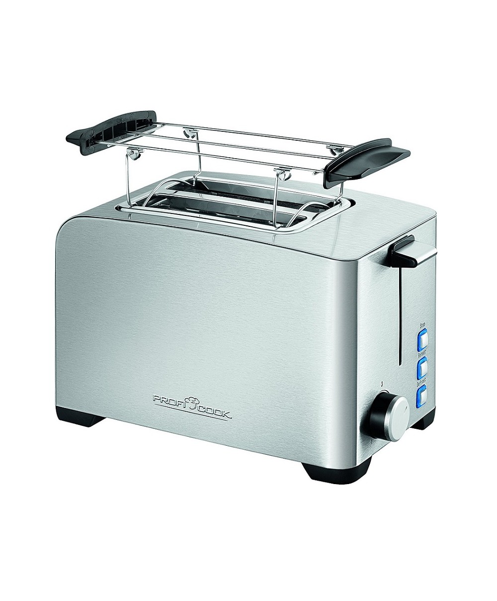 Il tostapane automatico PC-TA 1082 della ProfiCook è perfetto per preparare 2 toast contemporaneamente. Le fessure per inserire il pane sono ampie per permettere di scongelare e tostare ciambelle e pane. Oltre alla funzione doratura, infatti, TA1082 presenta le funzioni di scongelamento, riscaldamento e stop rapido.