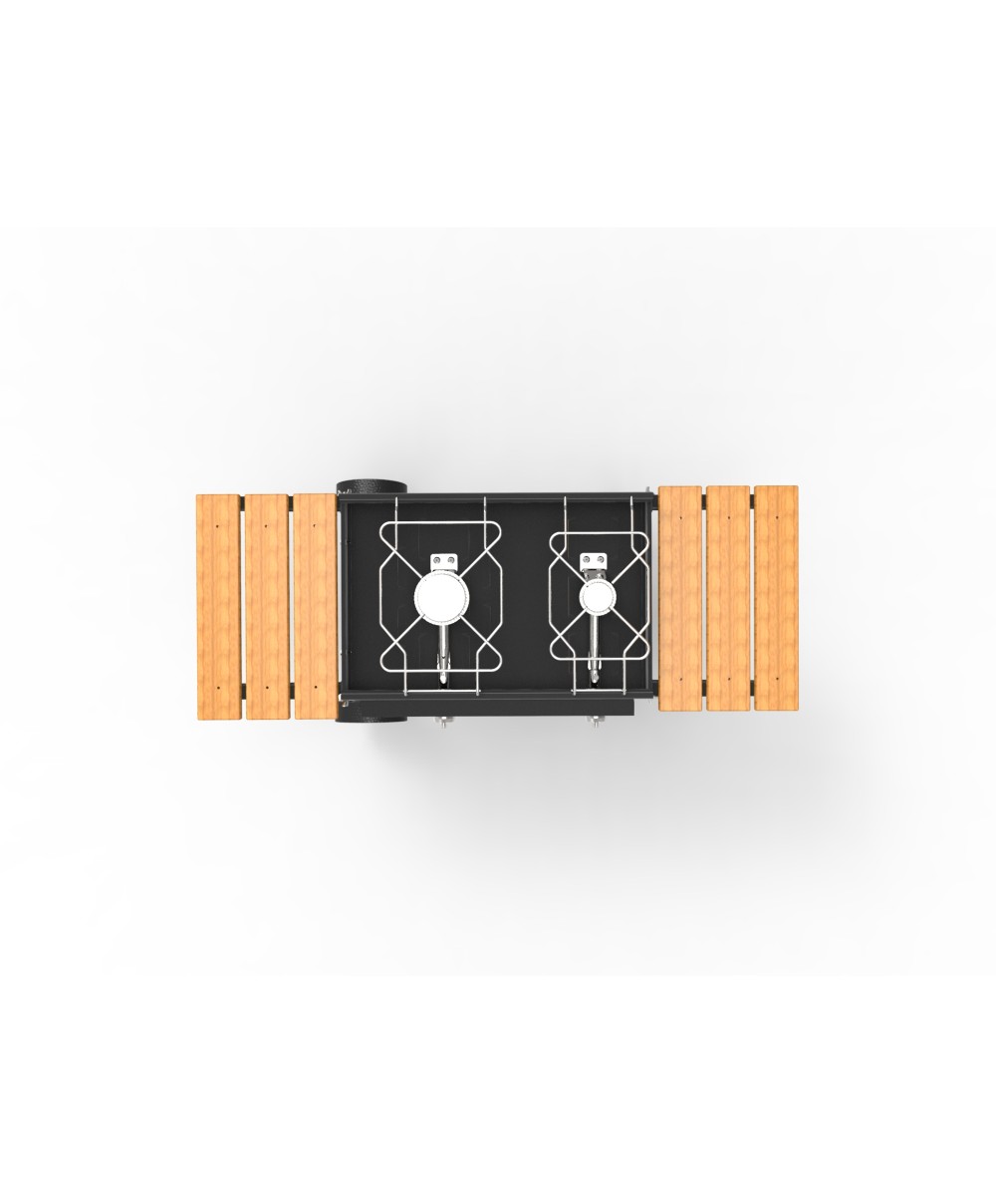 Cucinare senza grassi e unti? Con la nuovissima pietra lavica di Ferraboli si può! La pietra vulcanica ha una scanalatura su tutto il perimetro ed un foro in basso a sinistra, per poter raccogliere i grassi nell’apposito pentolino posto all’interno del braciere. La pietra è montata su una struttura in acciaio verniciato e scaldata da un bruciatore in acciaio inox. Bio Cooking a 2 fuochi ha anche un comodo bruciatore esterno (con porta-pentola cromato per alimenti) ed un coperchio in acciaio inox. Il Bbq ha anche tre comodi ripiani con listelli in legno certificato FSC, per appoggiare qualsiasi tipo di oggetto. Le ruote facilitano lo spostamento anche durate la cottura.