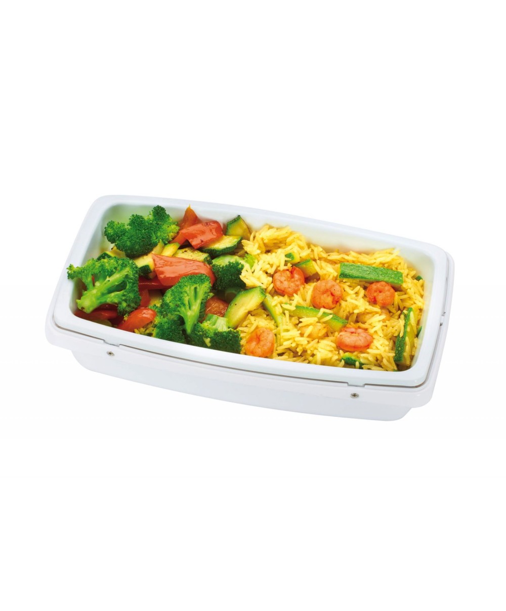 Ariete presenta l’evoluzione di Scaldì, lo scaldavivande elettrico, ideale per chi ha l’abitudine di consumare il pranzo fuori e non vuole rinunciare alla genuinità dei cibi preparati a casa. Grazie alla nuova forma rettangolare, Scaldì diventa più ergonomico e facile da portare con sé, entrando comodamente in una borsa. Il coperchio a chiusura ermetica evita la fuoriuscita dei cibi, mentre i due comodi ganci laterali rendono il coperchio più facile da rimuovere. Inoltre con il nuovo Scaldì si riducono notevolmente i tempi di riscaldamento del cibo. Il piatto interno è smaltato antiaderente, antigraffio e facilissimo da pulire. Portalo con te, riscalda e pranza!