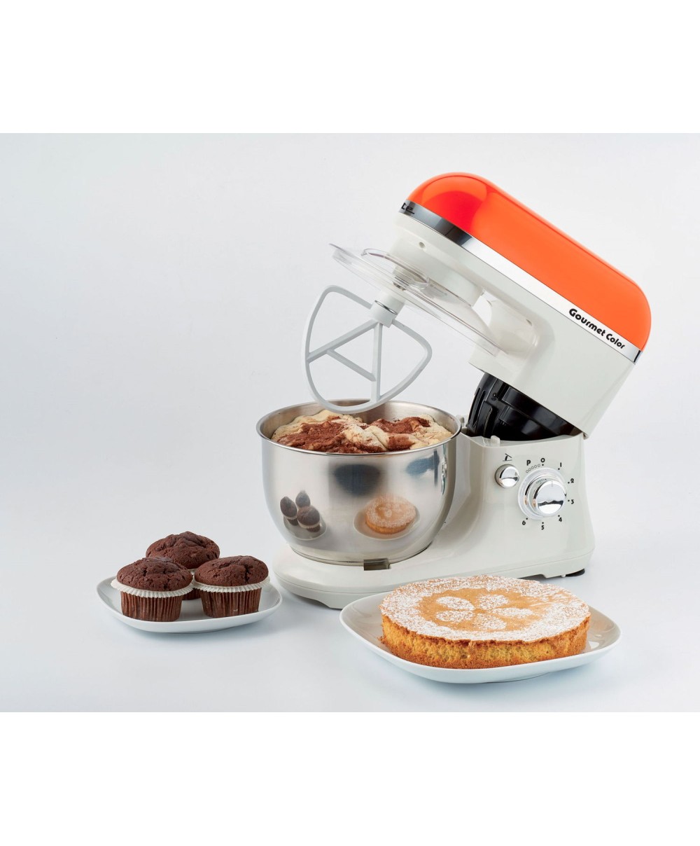 Gourmet Color è un impastatore multifunzionale e colorato con ciotola in acciaio inox (4 lt) dotata di paraschizzi. Impasta e monta grazie alle 6 velocità (presente anche la funzione Pulse) ed ai 3 accessori in dotazione: gancio per impasti morbidi, gancio per impasti duri e frusta a filo per montare.