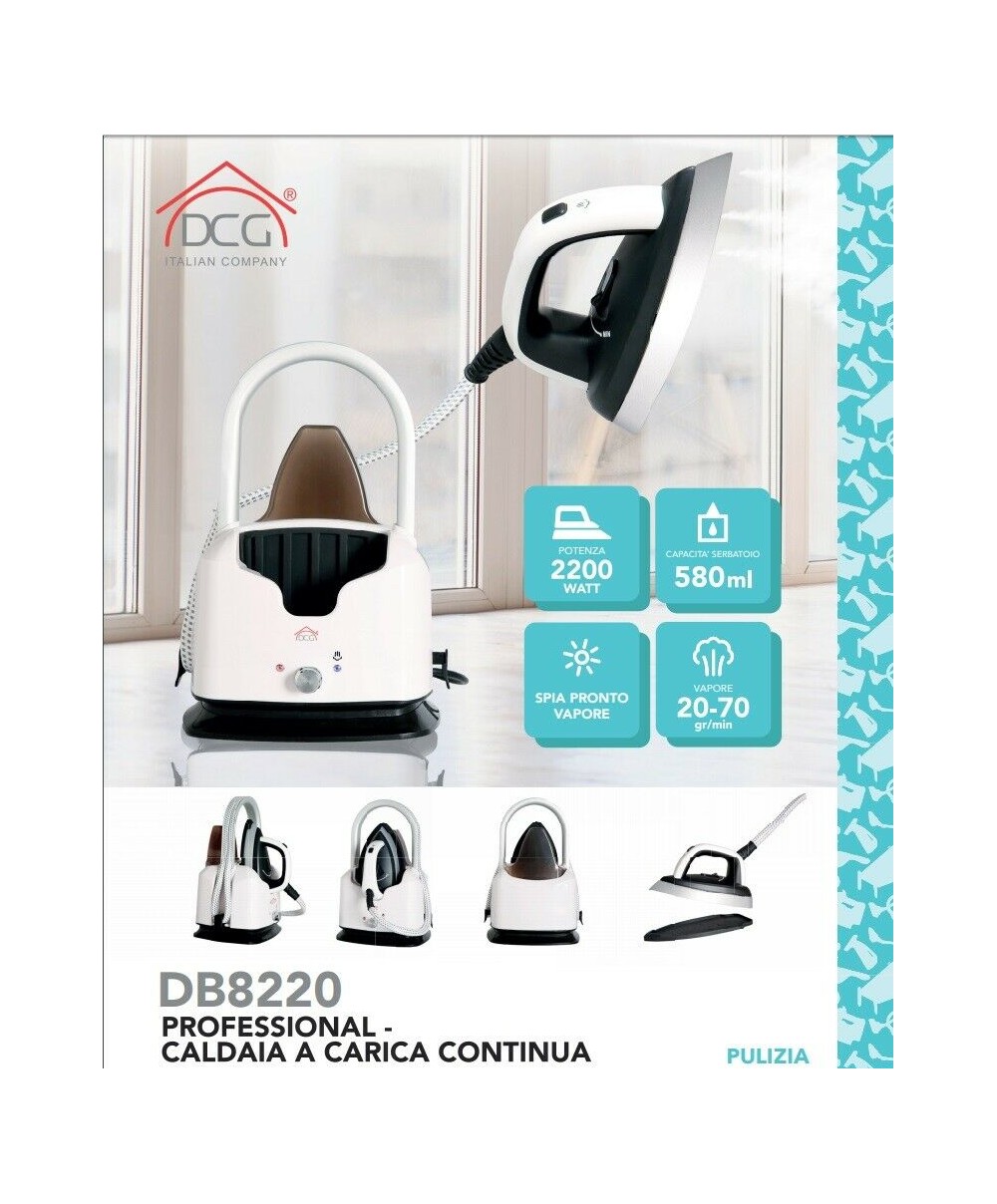 DB8220 di DCG è il sistema stirante a carica continua che ti garantisce la migliore stiratura in tempi ridotti grazie al serbatoio ricaricabile ed al vapore sempre pronto.