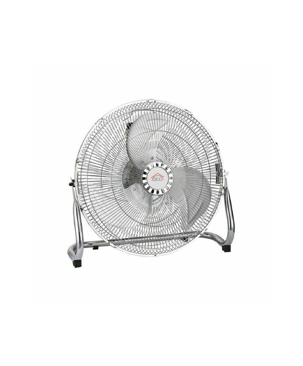 "CRB1220 è il ventilatore da pavimento di DCG. È dotato di struttura in metallo cromato, di tre velocità e di inclinazione alto-basso