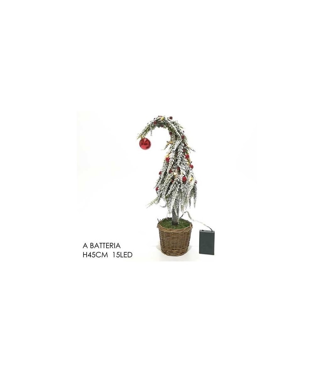 Albero di Natale innevato 45 cm con 15 luci led bacche rosse artificiale