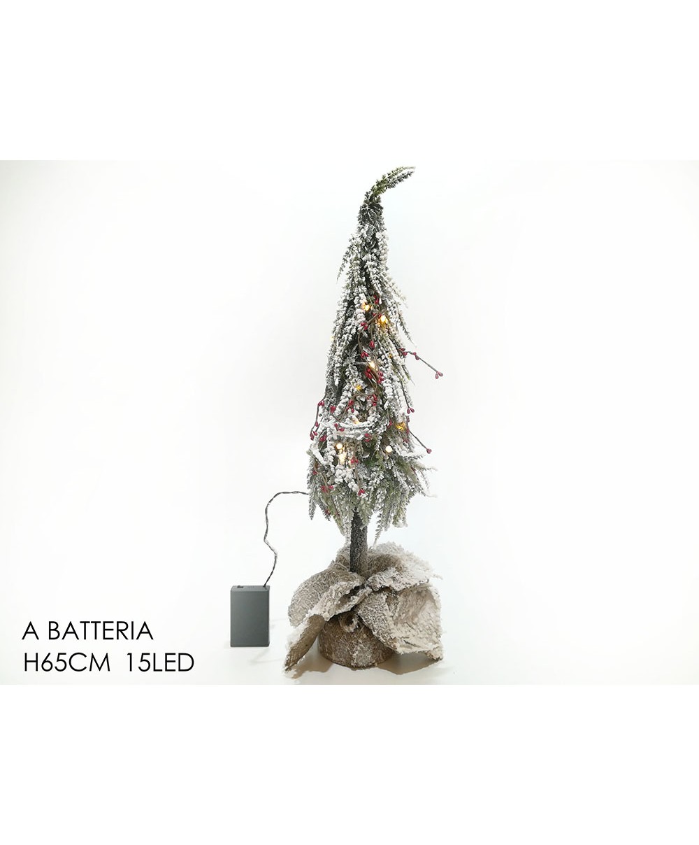 Albero di Natale innevato 65 cm con 15 luci led bacche rosse artificiale