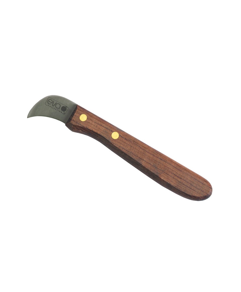 053216 è il coltello di Eva ideale per tagliare le castagne e i marroni. Realizzato in acciaio inox con lama leggermente curva e manico in legno.
