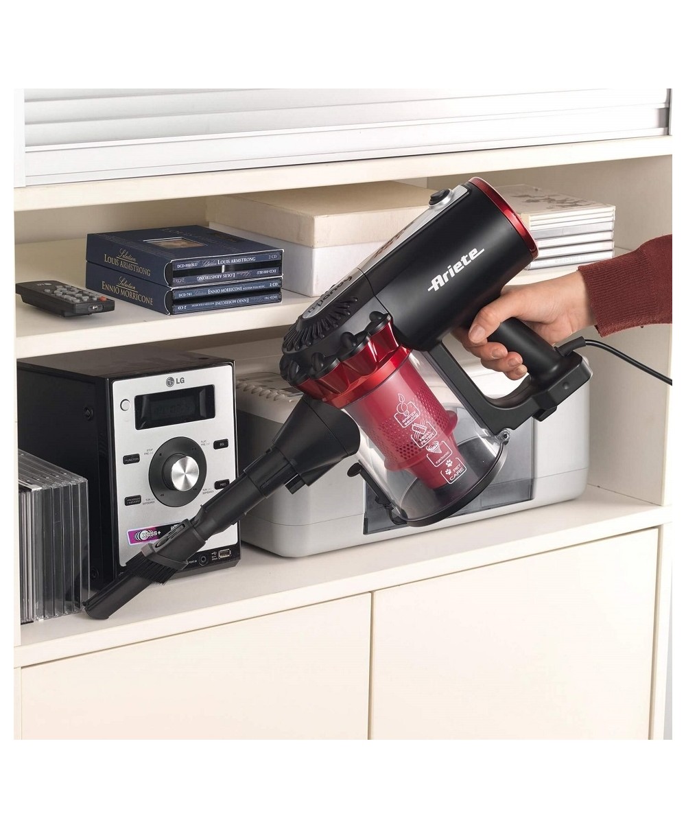 Handy Force Rbt è la scopa elettrica 2 in 1 con filo di Ariete dotata di doppia spazzola e di un kit di accessori che la rendono perfetta per eliminare la polvere in modo pratico e veloce da tutte le superfici di casa, inclusi divani, fessure e interni auto.