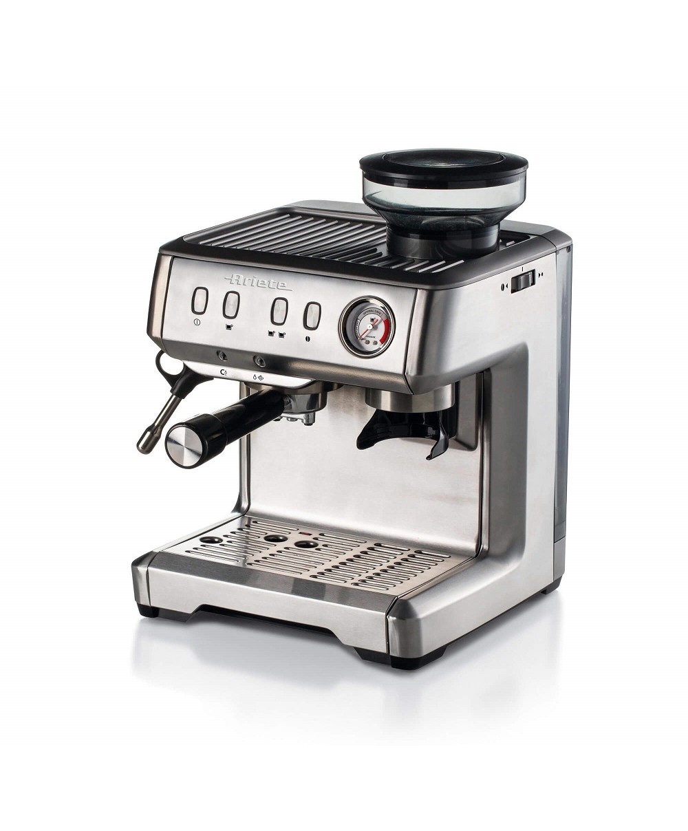 "Questa macchina per caffè espresso con macina caffè integrato è un vero e proprio gioiello, un oggetto di design prezioso, realizzato interamente in acciaio inox e dedicato ai veri amanti del caffè espresso.