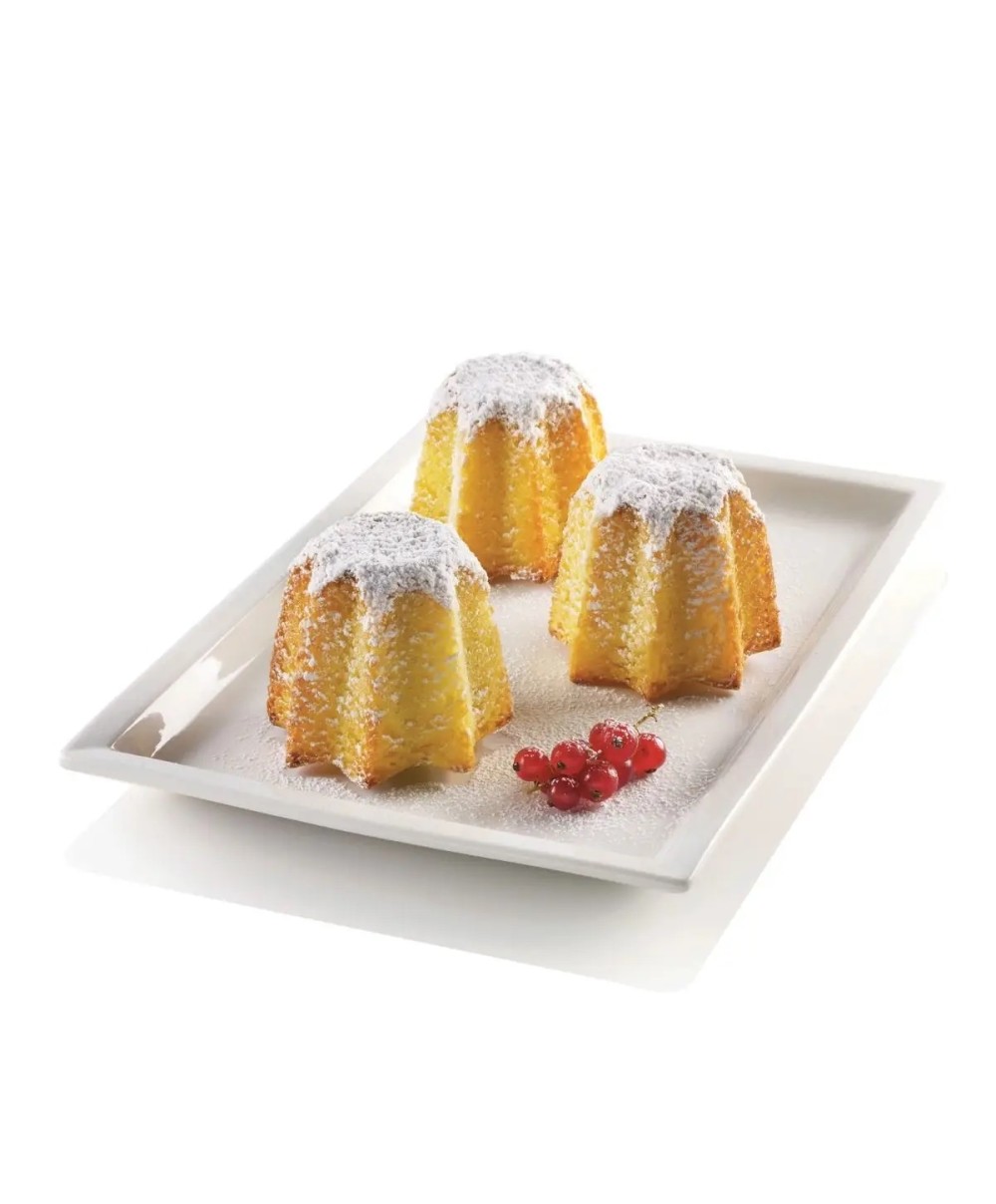 Stampo multiporzione Mini Pandoro realizzato con silicone platinum alimentare sicuro al 100%.