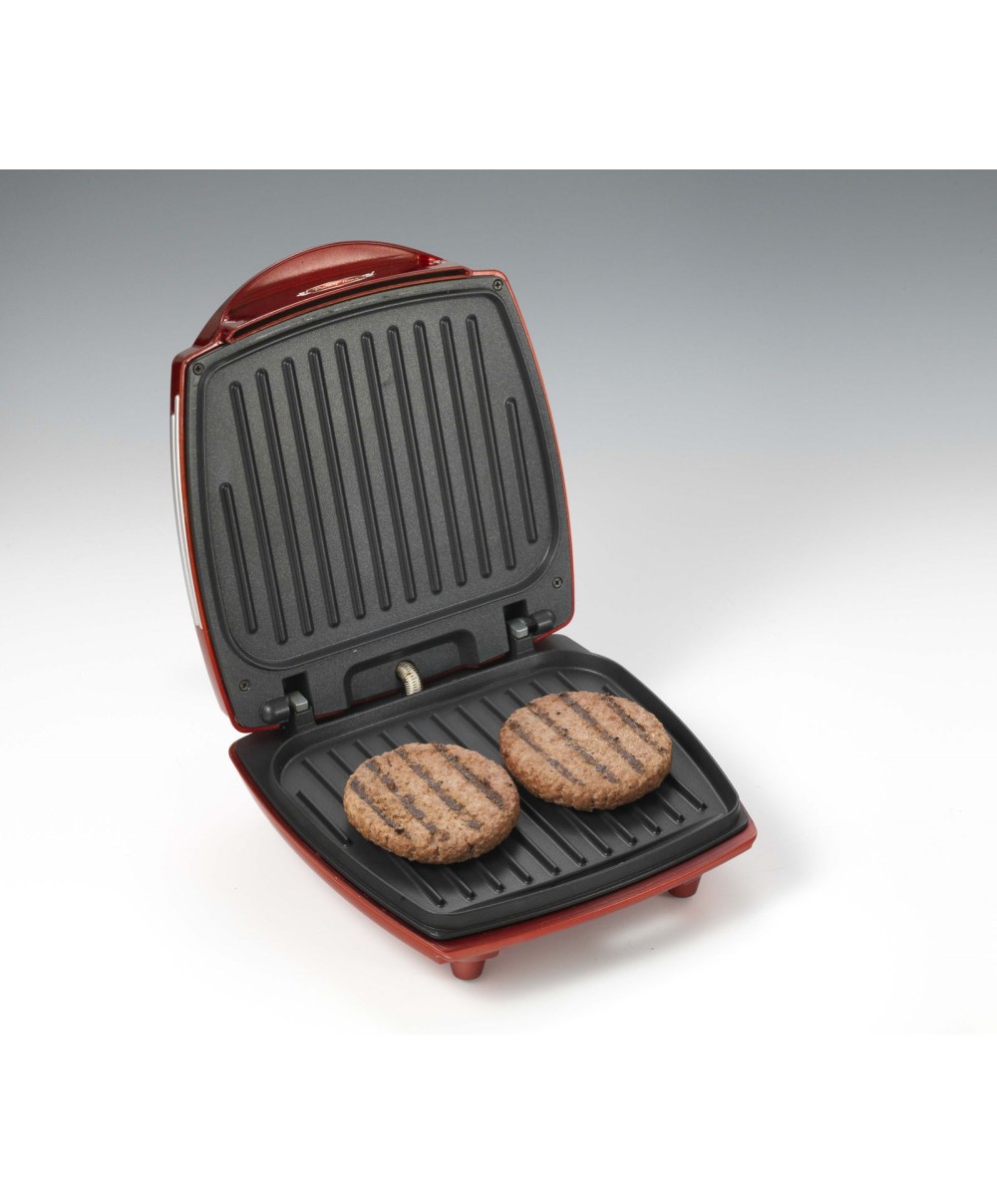 185 è la griglia elettrica da tavolo di Ariete per hamburger con piastre antiaderenti: piastra inferiore per grigliare e piastra superiore per scaldare.