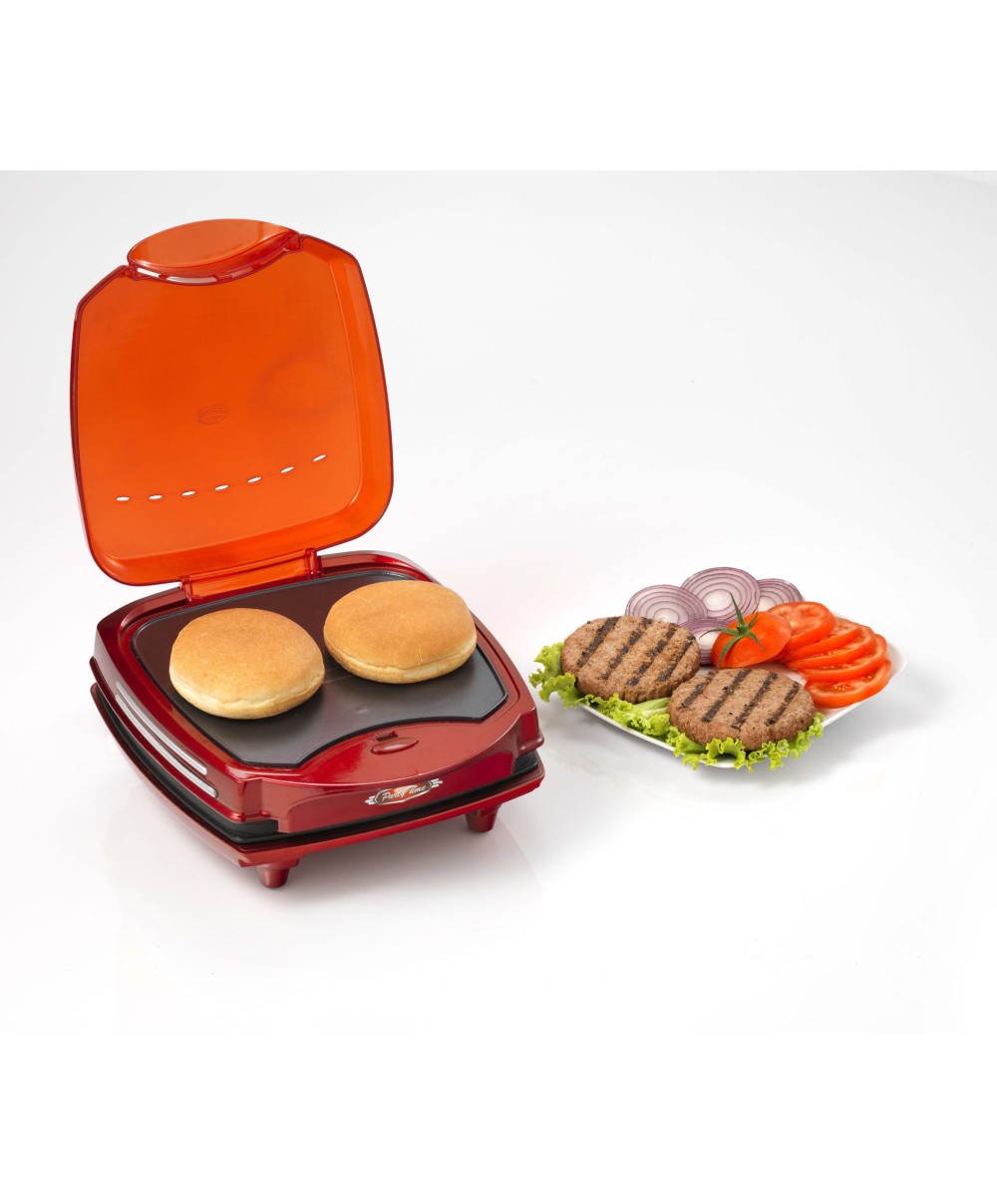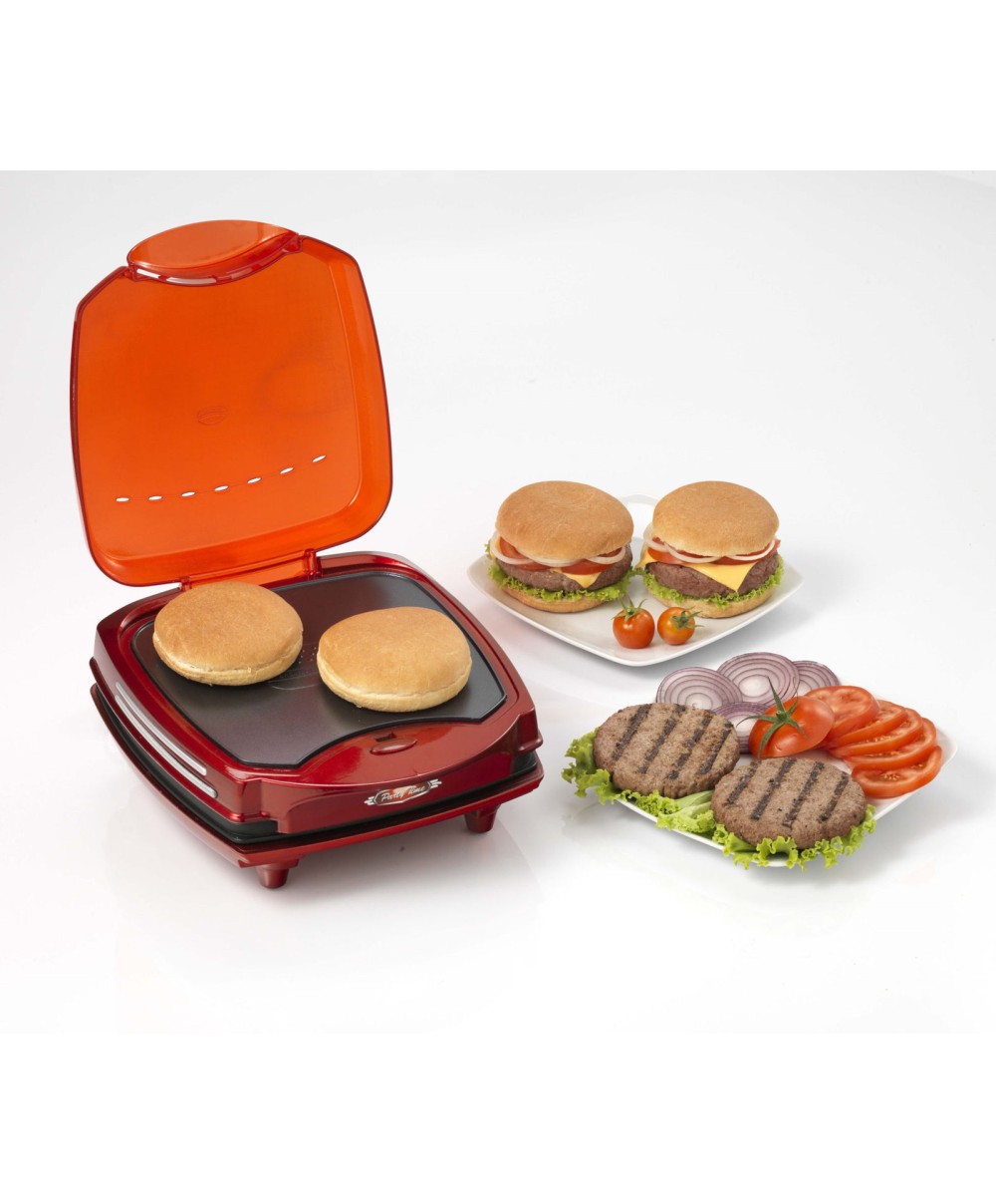 La griglia elettrica da tavolo Hamburger Maker di Party Time è il modo più semplice per preparare a casa gustosi e succulenti hamburger. Grazie alle due piastre antiaderenti sovrapposte puoi contemporaneamente grigliare la carne e scaldare i panini, in questo modo in meno di 5 minuti assembli i tuoi hamburger con tutti gli ingredienti che preferisci. Con Hamburger Maker di Party Time non prepari solo hamburger, ma anche toast e panini caldi farciti per i tuoi party di compleanno o le merende più divertenti. La piastra elettrica da tavolo è semplicissima da utilizzare, ma anche da pulire, perché le piastre antiaderenti si puliscono rapidamente, per avere il tuo Hamburger Maker sempre pronta all'uso!