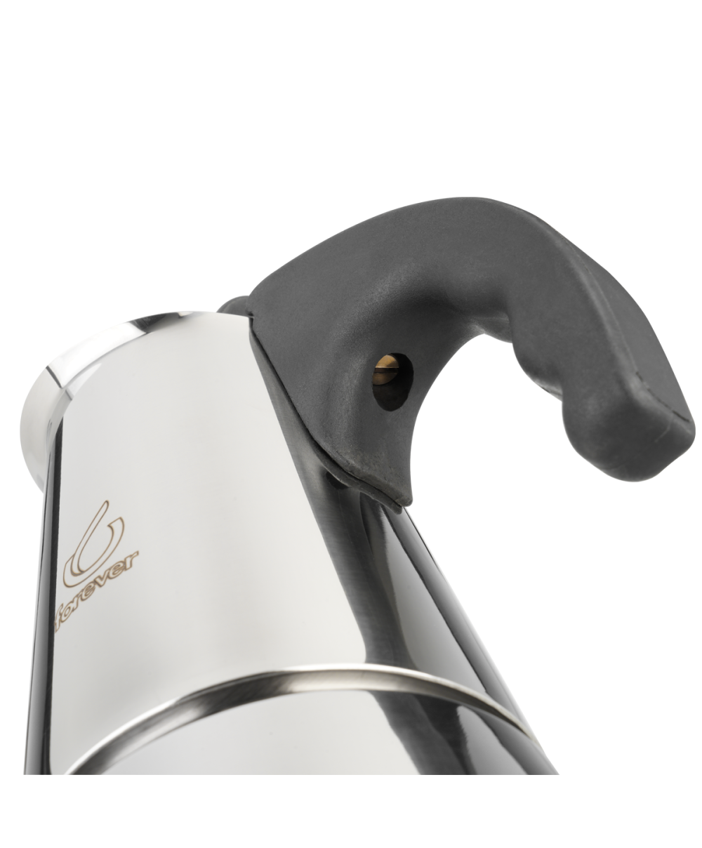 Il design di questa caffettiera è caratterizzato da una base larga, per una maggiore stabilità. Abbiamo sviluppato di recente un’impugnatura ergonomica, super antiscivolo e maneggevole.