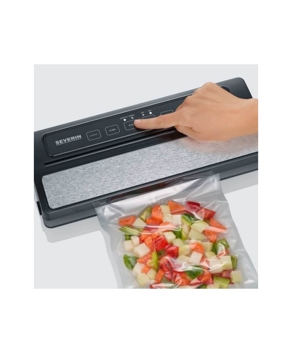 FS 3611 è la macchina per il sottovuoto di Severin con potenza di circa 110 watt, cutter integrato e pratici pulsanti Sensor Touch.