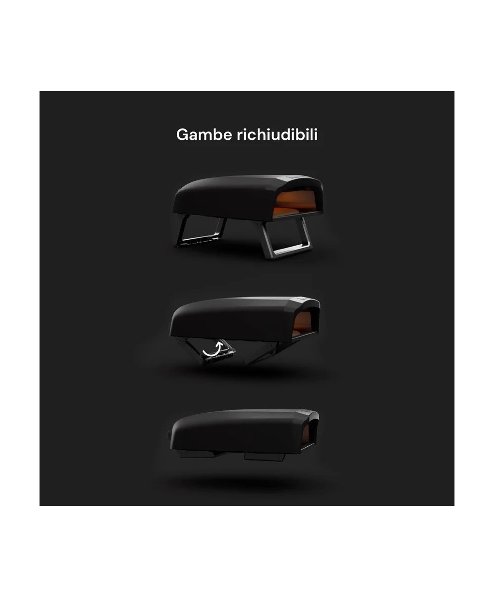Forno portatile alimentato a gas, in grado di cucinare l’autentica pizza cotta su pietra in qualsiasi spazio all’aperto in soli 60 secondi. L’apertura del forno e la superfice del piano di cottura permettono di cuocere pizze del diametro di circa 30 cm. Accensione istantanea e controllo del calore regolabile. Dal design eccezionale, progettato per essere pratico e facile da utilizzare.