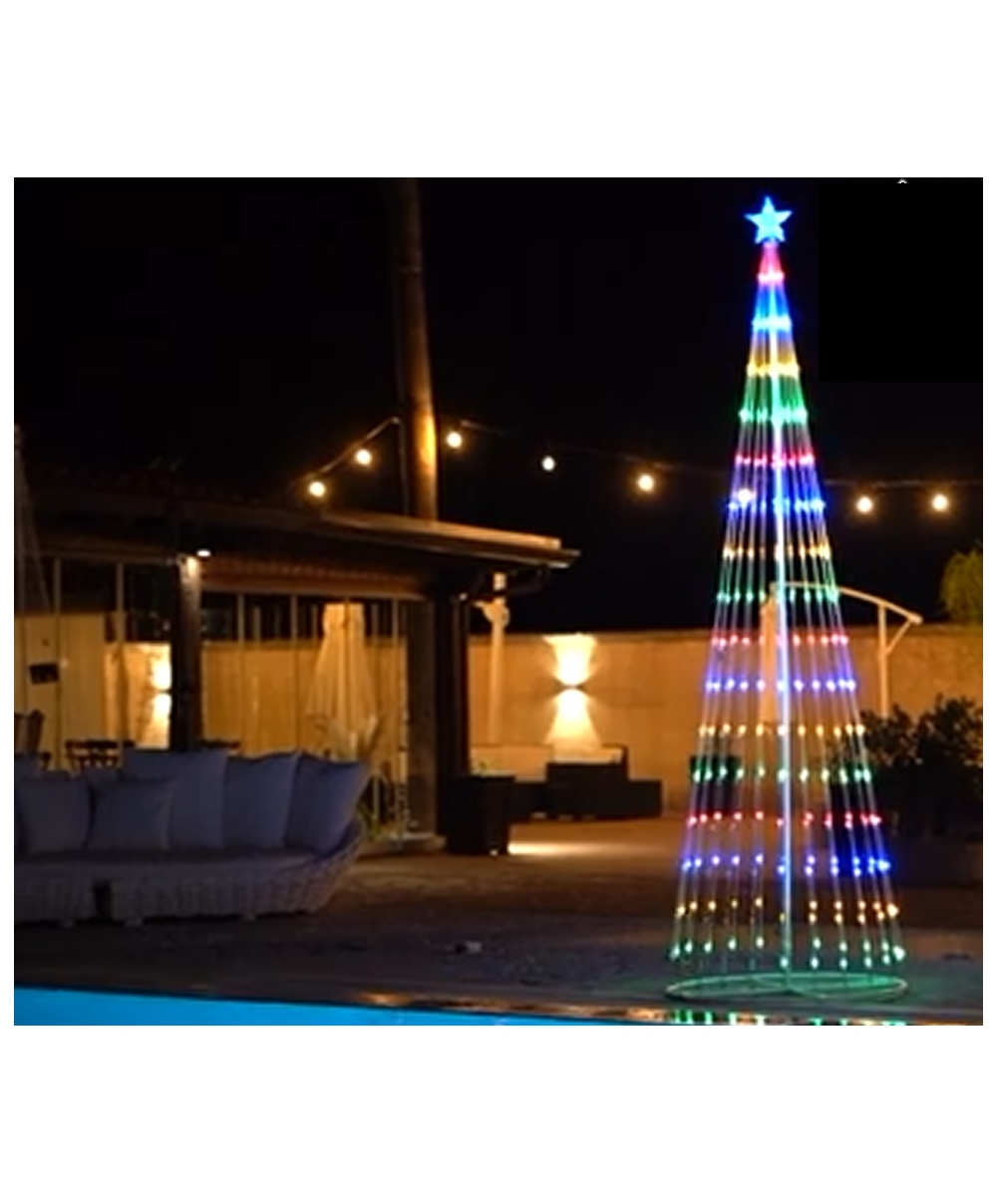 Albero di Natale luminoso 2 mt Multicolore a cono
