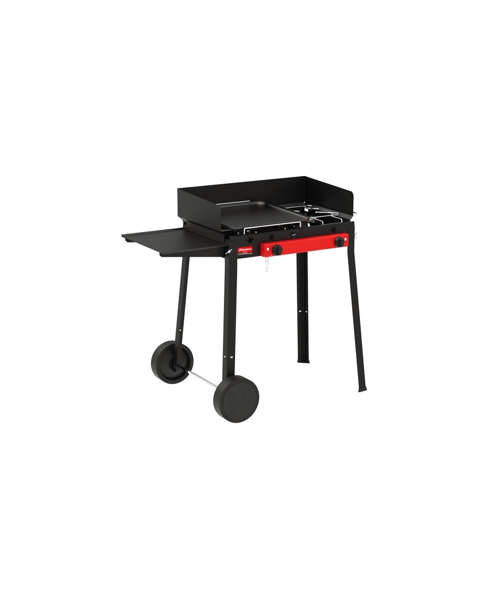 Barbecue Plancha Gas Combinato di Ferraboli è dotato di piastra in acciaio smaltato, combinata con un fornello tradizionale per la massima versatilità di cottura.